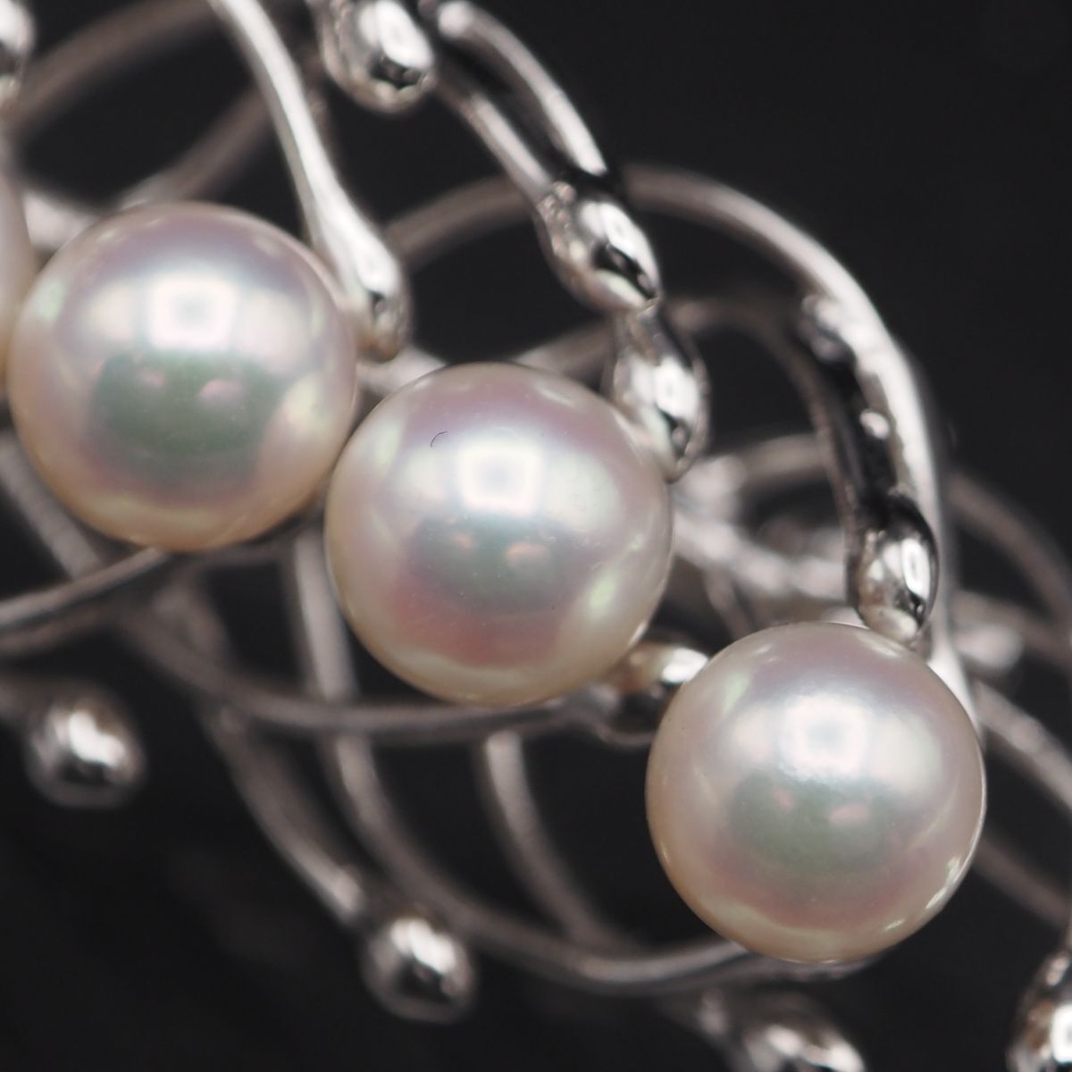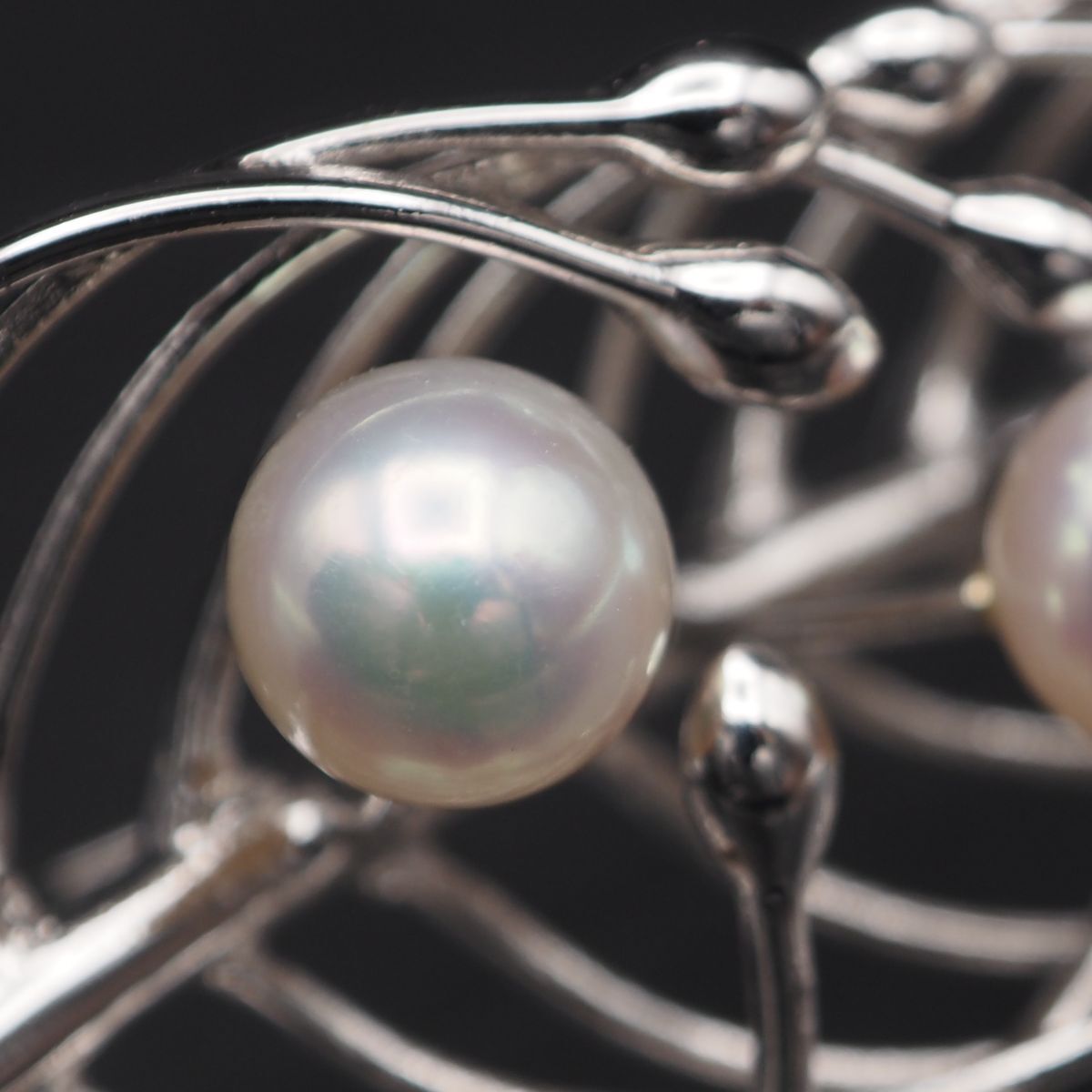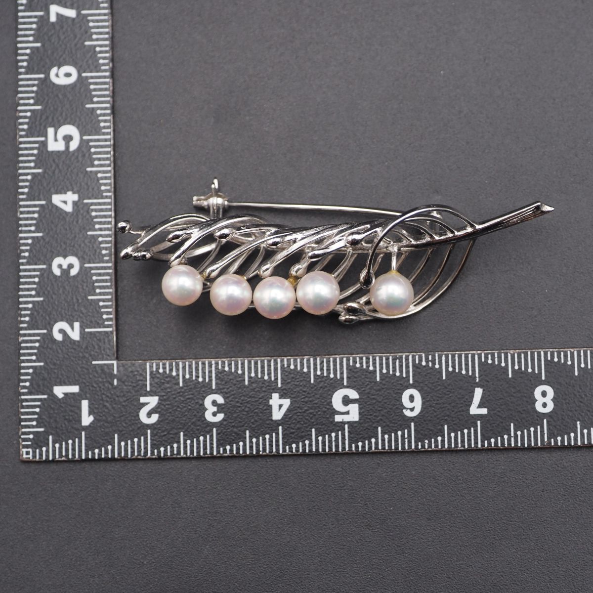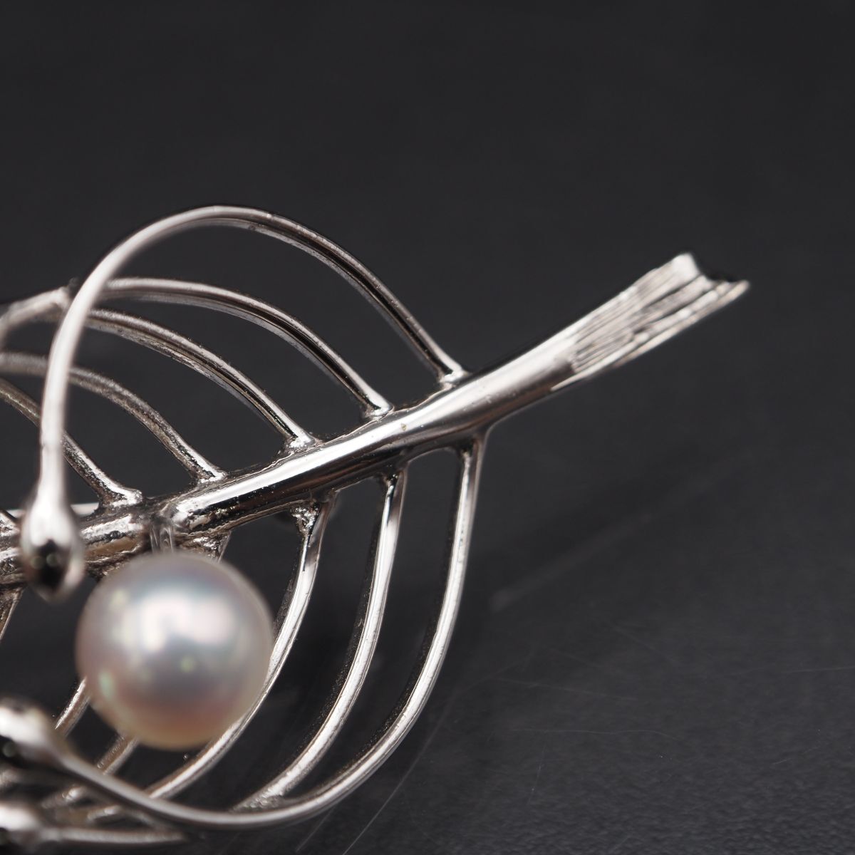 A046 本真珠 6~6.7mm5珠 パール SILVER刻印 ブローチ リーフ デザイン シルバー コサージュ 6月誕生石