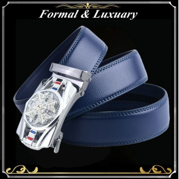 ベルト j45【紺】ネイビー 穴なし 無段階調整ベルト ゴルフベルト 人気 オートロック メンズ 革 ジーンズ ビジネス カジュアル