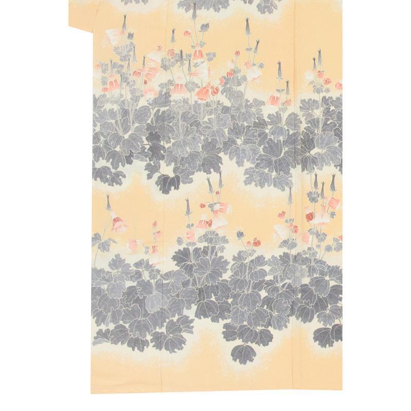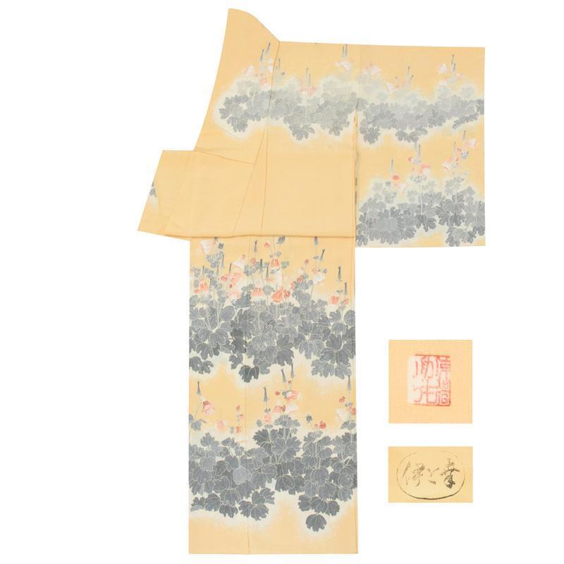 | ★品質・詳細 | ○地色 【こちらの地色は黄クリーム色系のロウケツ染めボカシ友禅です。】 ○絹織物 ○新品・未仕立の逸品訪問着の仮絵羽です。 ○最高級ちりめん生地使用 ○参考上代 980,000円 |