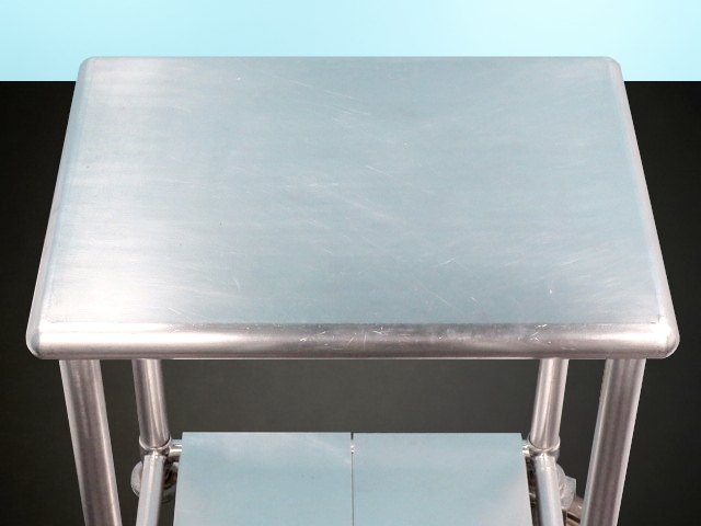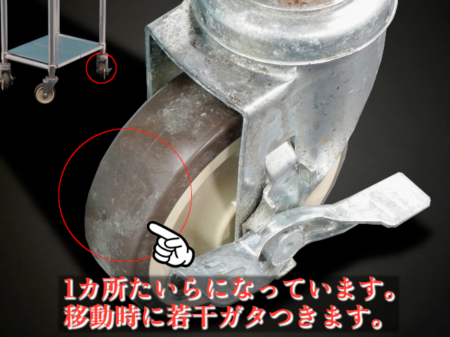 【商品説明】 ★移動可能なキャスター式です。 ★対角の2カ所にストッパーが付いています。 ★上質なステンレスで出来ていますので【耐食性】【耐熱性】【耐久性】に優れています。 【状態:中程度★★★☆☆】 『◎』現状渡し品:ノークレームノーリターンです。 『※』写真や説明文を必ずご確認の上ご検討ください。 『△』中古品につき[すり傷][シミ][サビ]等の使用感がございます。 『△』タイヤの1カ所が平らになっており,それが原因で若干移動時にガタつきがあります。 『※』上記文章と写真をご確認いただき【USED品】とご理解いただいた上でご検討ください。 『商品詳細』