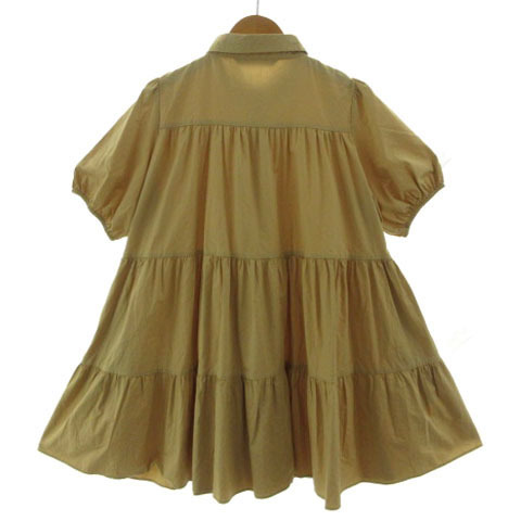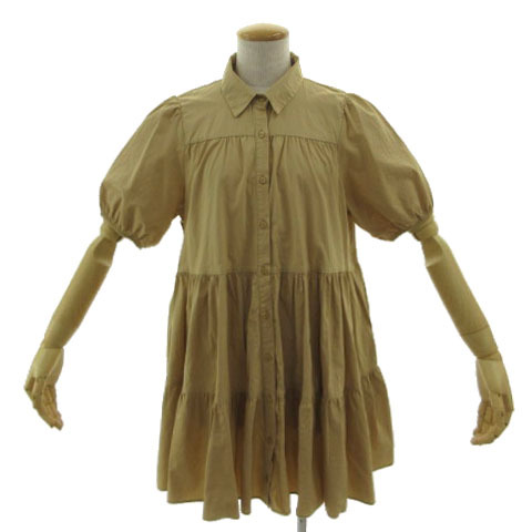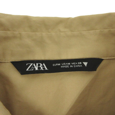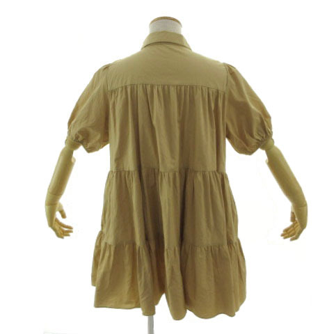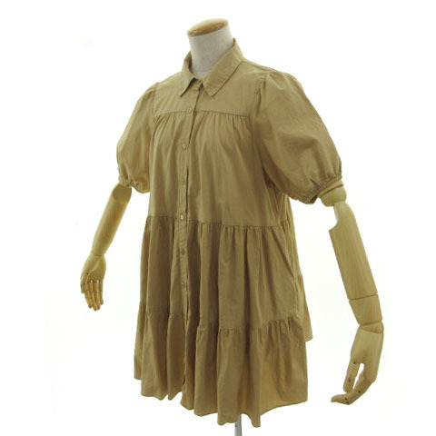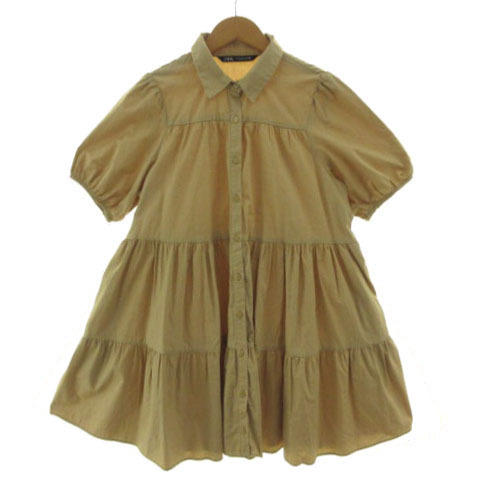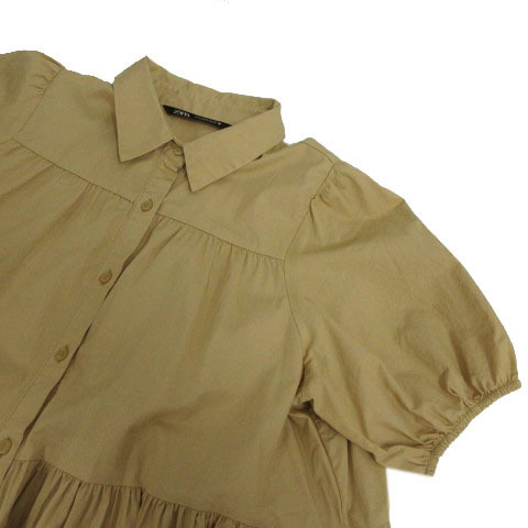 ザラ ZARA シャツ チュニック丈 パフスリーブ 半袖 ティアード コットン ベージュ M レディース