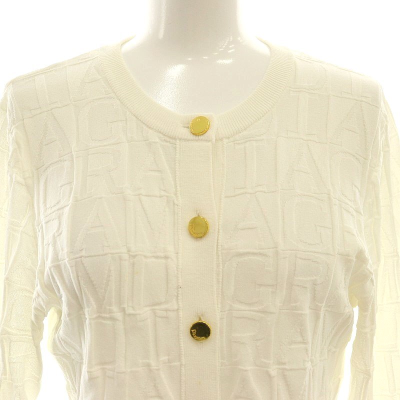 ダイアグラム グレースコンチネンタル Diagram GRACE CONTINENTAL 25SS モノグラムニットカーディガン ショート丈 クルーネック 36 白