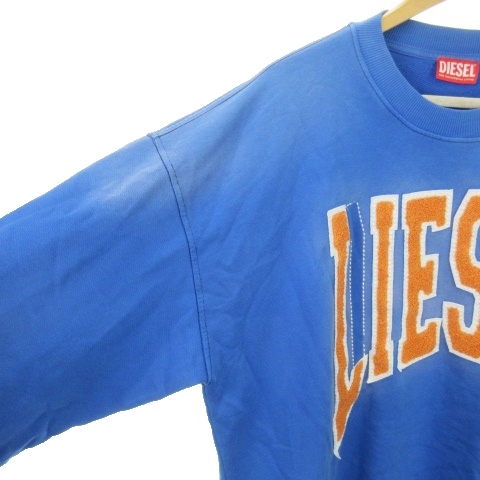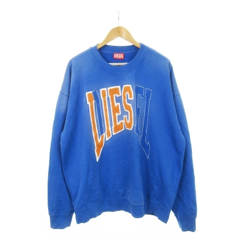 ディーゼル DIESEL S-BOXT-N6 スウェット トレーナー サガラワッペン 刺繍 ユーズド加工 ロゴ XL 青 ブルー A12124 /AH3 ■GY18