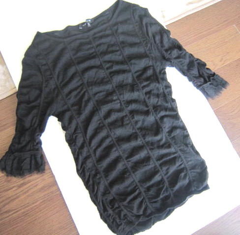 Sサイズ 五分袖 です。とても伸縮性あります。 肩幅33cm身幅35cm着丈67cm 素材表記毛100%