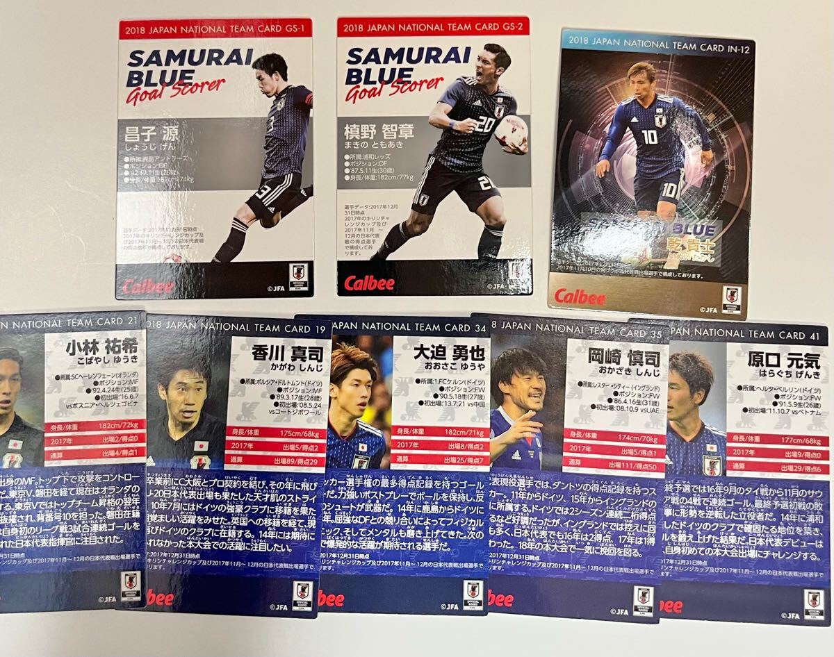 カルビー2018 サッカーカード JAPAN NATIONAL TEAM 日本代表チーム 8枚セット 香川真司 岡崎慎司 大迫勇也 槙野智章 乾貴士ほか