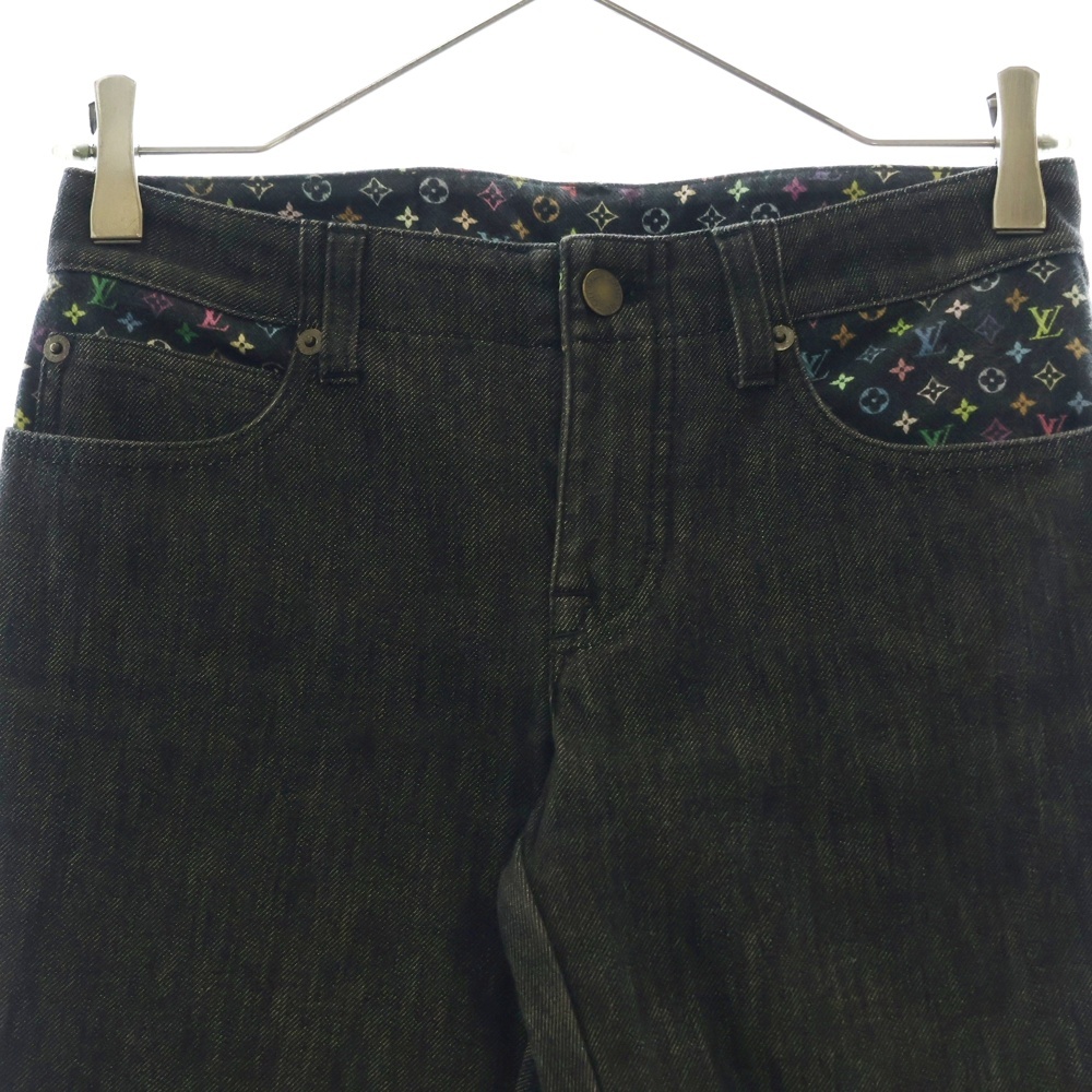 LOUIS VUITTON ルイヴィトン モノグラム ステッチ切替 クロップドデニム グレー×マルチ レディース RW111W WOPA02DAZ