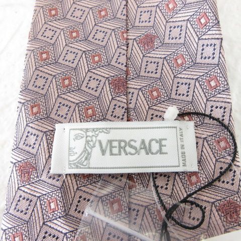未使用品 ヴェルサーチ ヴェルサーチェ VERSACE シルクネクタイ グレカ柄 メドューサ ピンク *A970 ☆AA★ メンズ