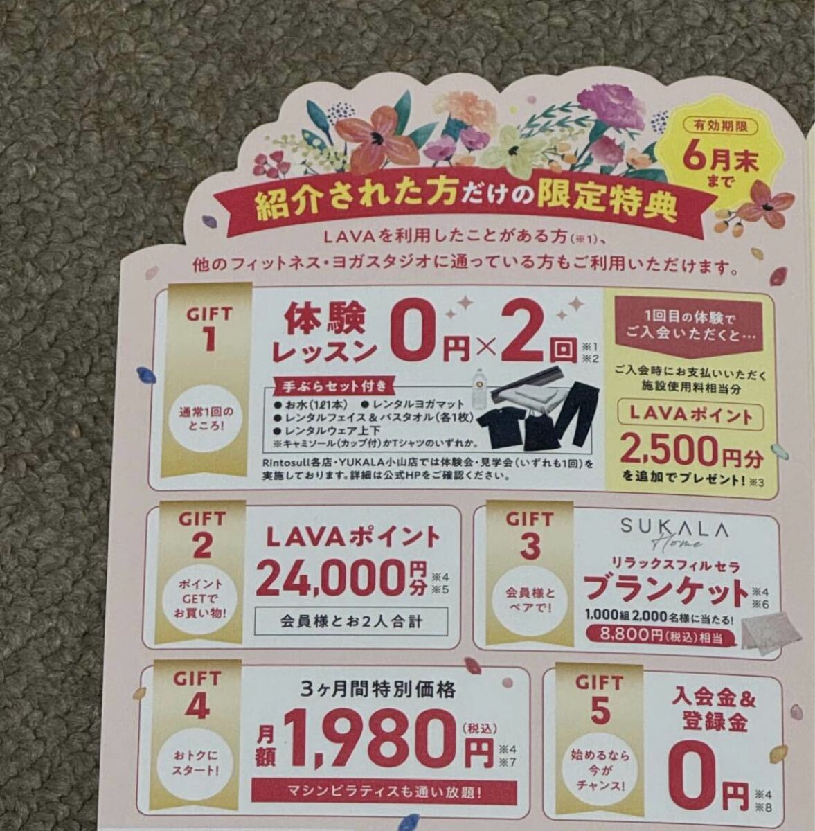 ホットヨガスタジオLAVAのお友達紹介状(Rlntosullも含む)A
