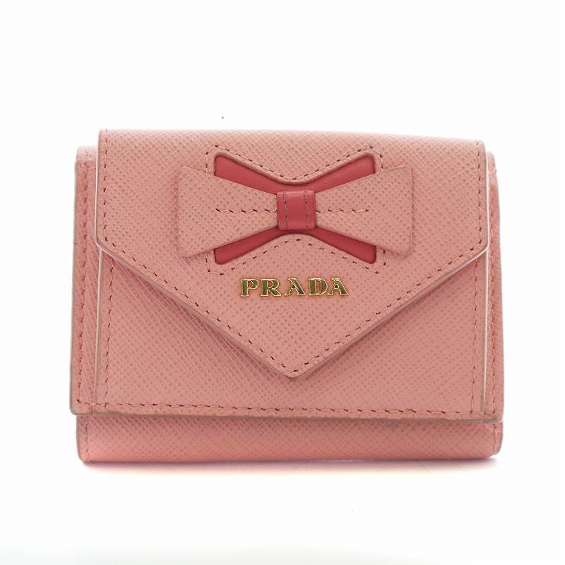 プラダ PRADA 財布 三つ折り ミニウォレット サフィアーノレザー リボン ロゴ ゴールド金具 ピンク 1MH021 2B7S