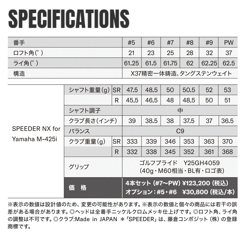 ■ 2025年 ヤマハ INPRES DRIVESTAR TYPE/D アイアン SPEEDER NX for Yamaha M-425i 4本セット(#7~PW) SR