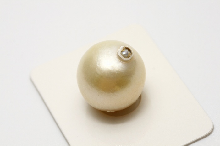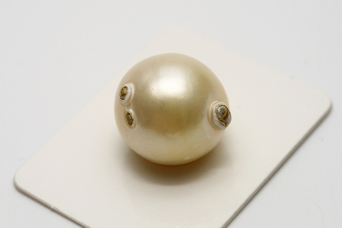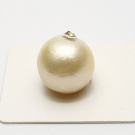 | 周りの方の視線を集める貴重な15mmサイズの南洋白蝶真珠ルースです。キズは散見されますが,見事な存在感が欠点をカバーしてくれます。優しいゴールドカラーの色合いが出ています。ペンダントやリングなどにオススメです。 | ||