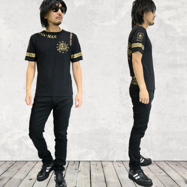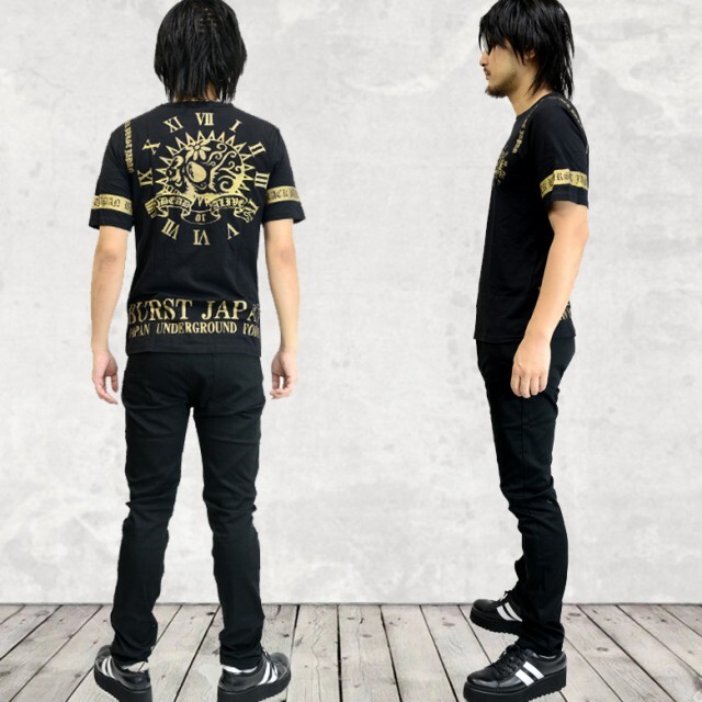 BURST JAPAN メキシカンスカルプリント半袖Tシャツ ブラック×ゴールド 70557 新品 ブラックゴールド L