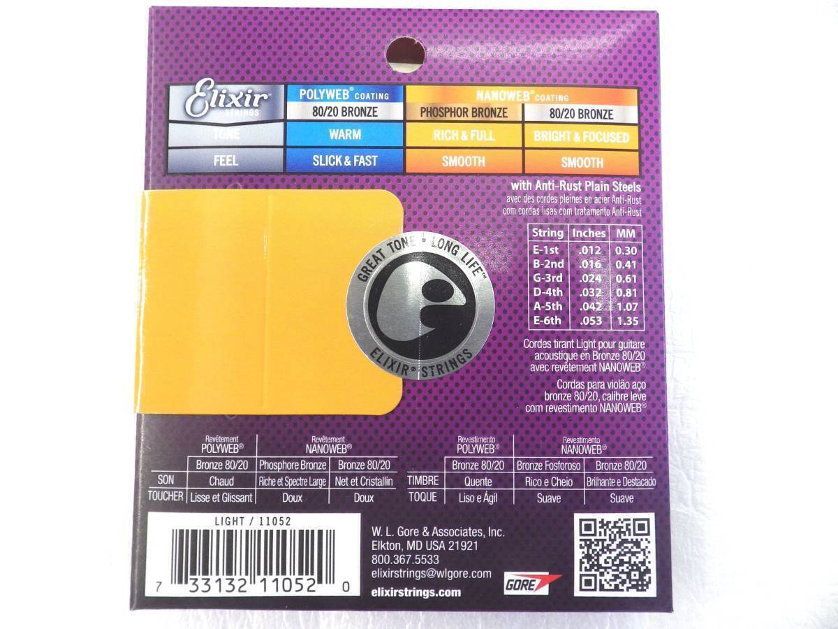 ELIXIR エリクサー アコースティックギター弦 NANOWEBコーティング ナノウェブ 80/20ブロンズ ライトゲージ #11052 国内正規品
