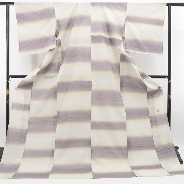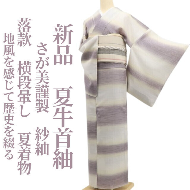 tomihisa 新品 さが美謹製 紗紬 落款 横段暈し 夏着物“地風を感じて歴史を綴る”正絹 仕付け糸付 夏牛首紬 5621