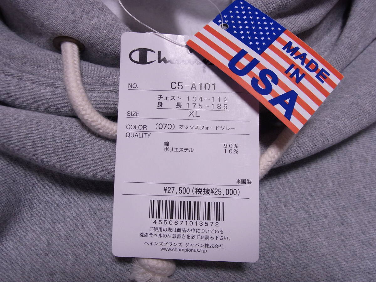 新品/USA製/米国製/Champion/チャンピオン/C5-A101/リバースウィーブスウェットパーカー/XL/オックスフォードグレー/定価27,500円