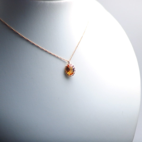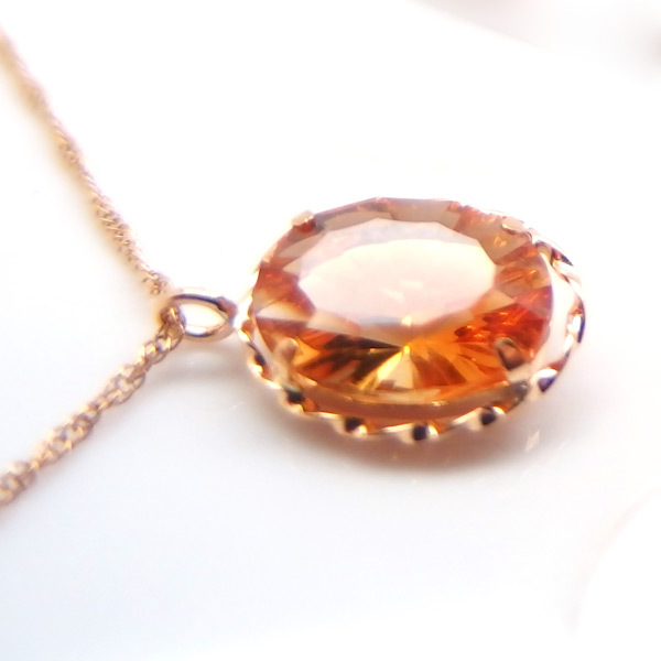11月の誕生石、エネルギーを感じるオレンジが瑞々しくきらめく、コーンケイブカットを施したシトリンのネックレス