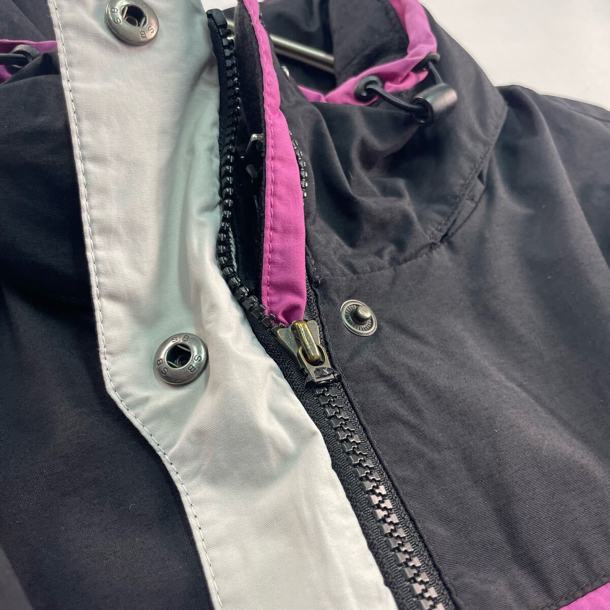 ポイント: Waterproof(ウォータープルーフ)にBreathable Fabric(通気素材)の機能性に優れたナイロン素材、ボリュームのあるフード付きのネックとフロントの二重ジップ、着回ししやすいブラックをベースに落ち着いた明度のピンクの差し色が可愛らしく素敵な1枚です。USサイズなのでS-Mくらいのサイズの方でしたらメンズでも着れるサイズ感です。