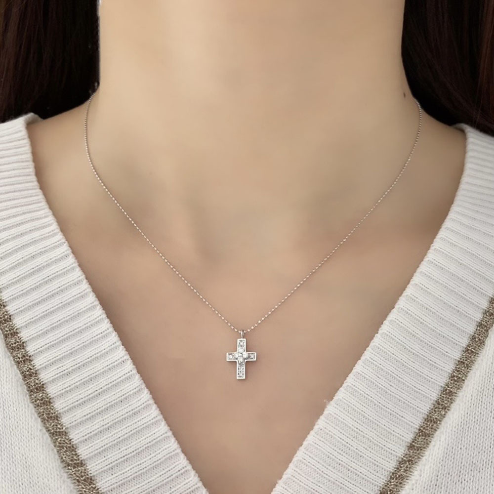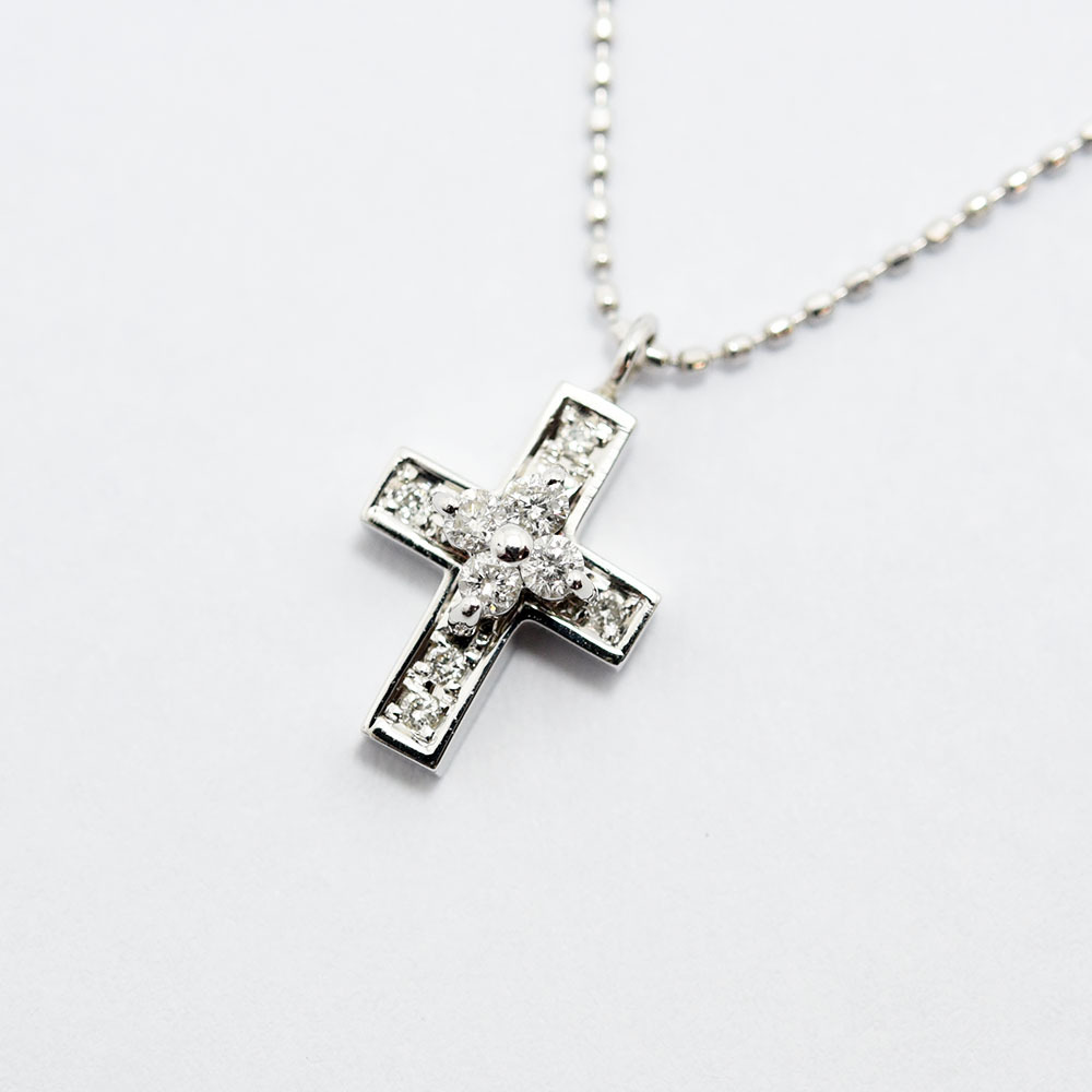 ダイヤモンドが煌めく、クロスモチーフのヴァンドーム青山のネックレスです。新品仕上げ済みです。 |