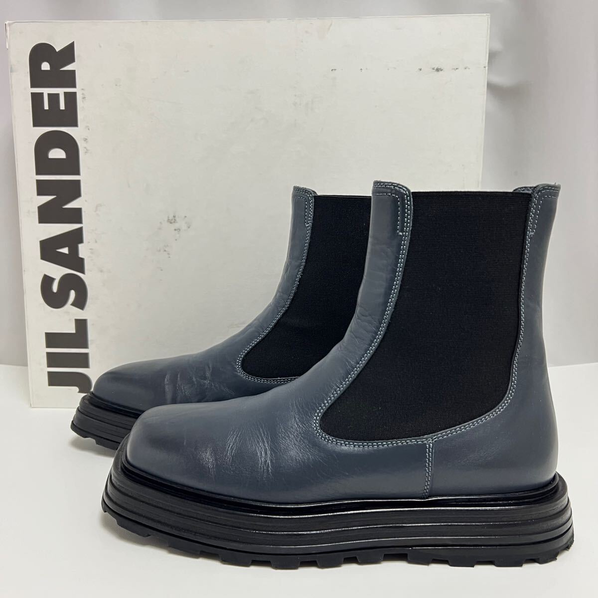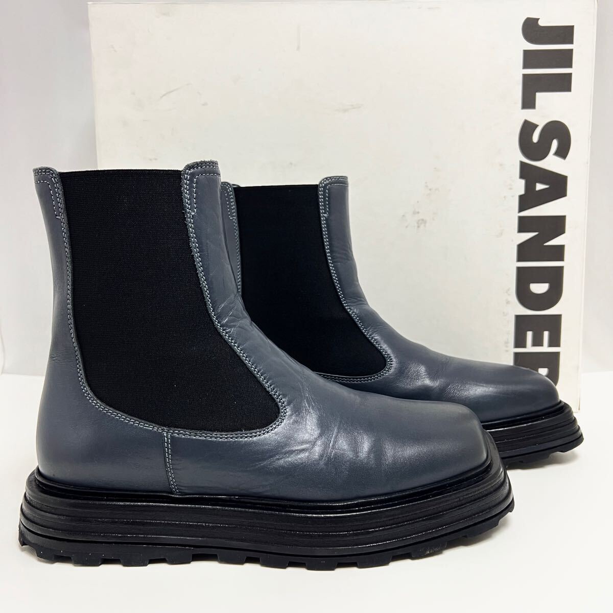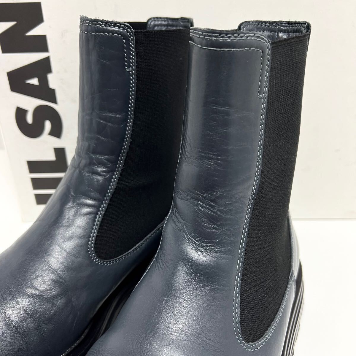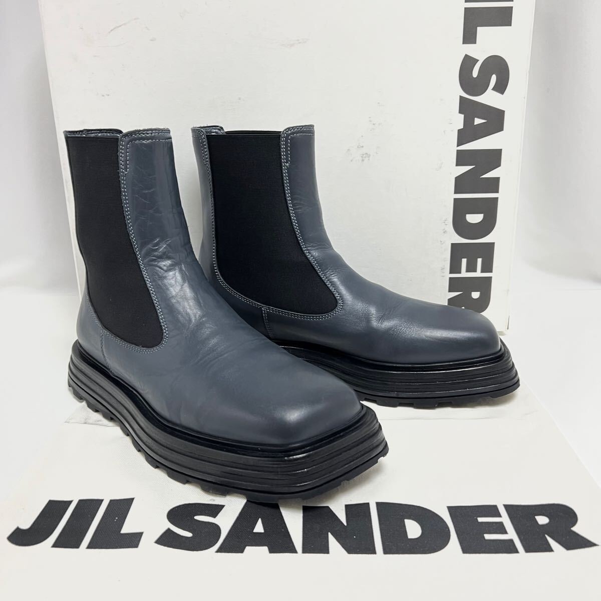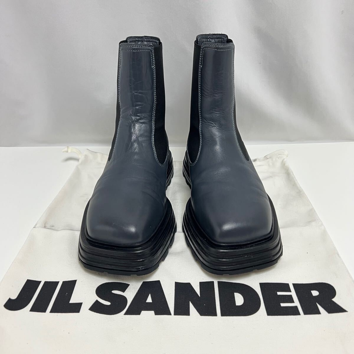 28cm 新品 JIL SANDER ジルサンダー サイドゴア レザー アンクル ブーツ シワ有 ANKLE BOOT スクエア チェルシー レザーブーツ JILSANDER