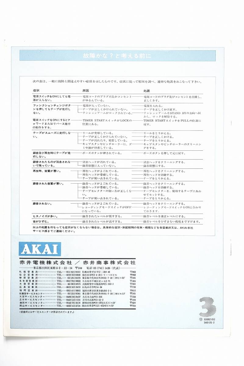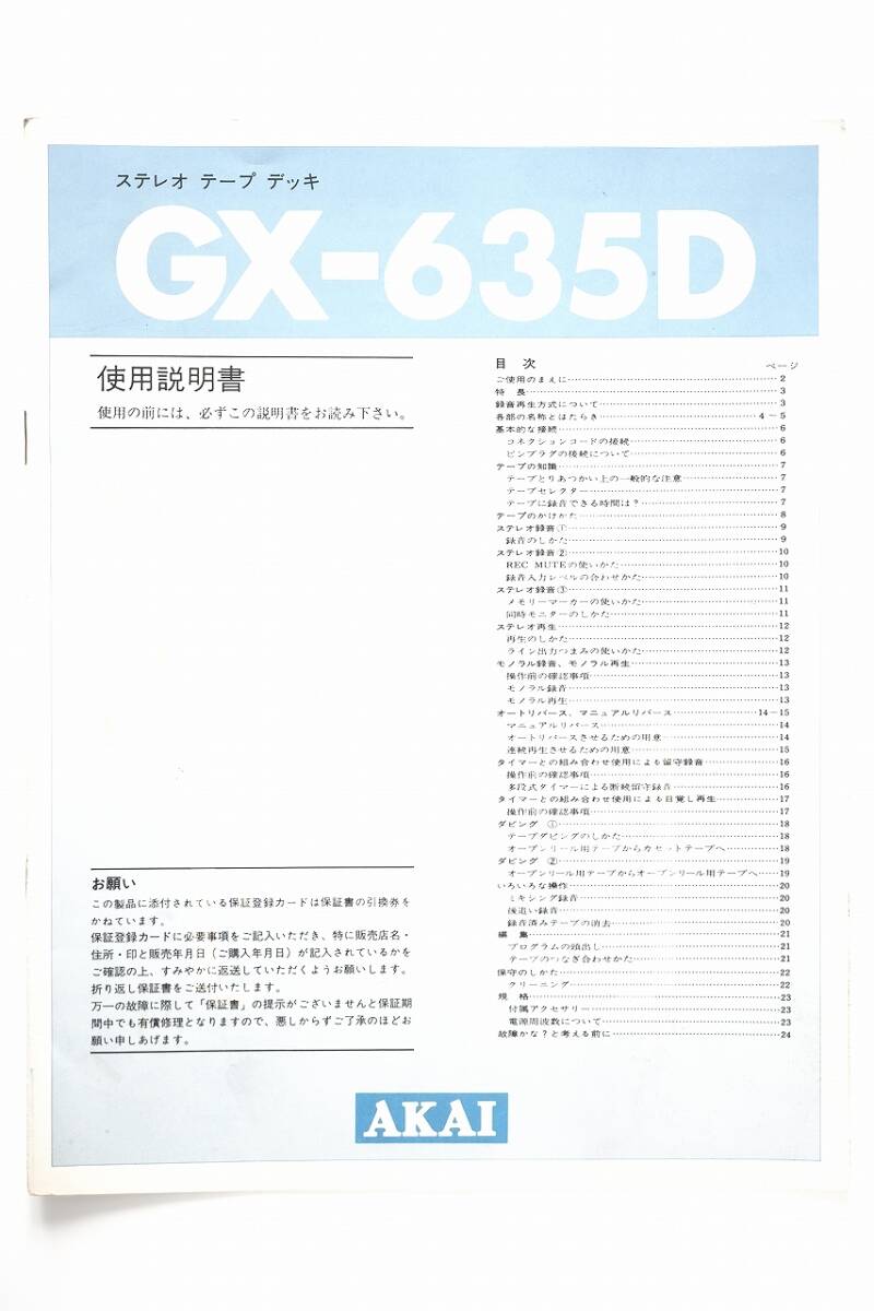 取扱説明書 AKAI 赤井 オープンリールデッキ GX-635D