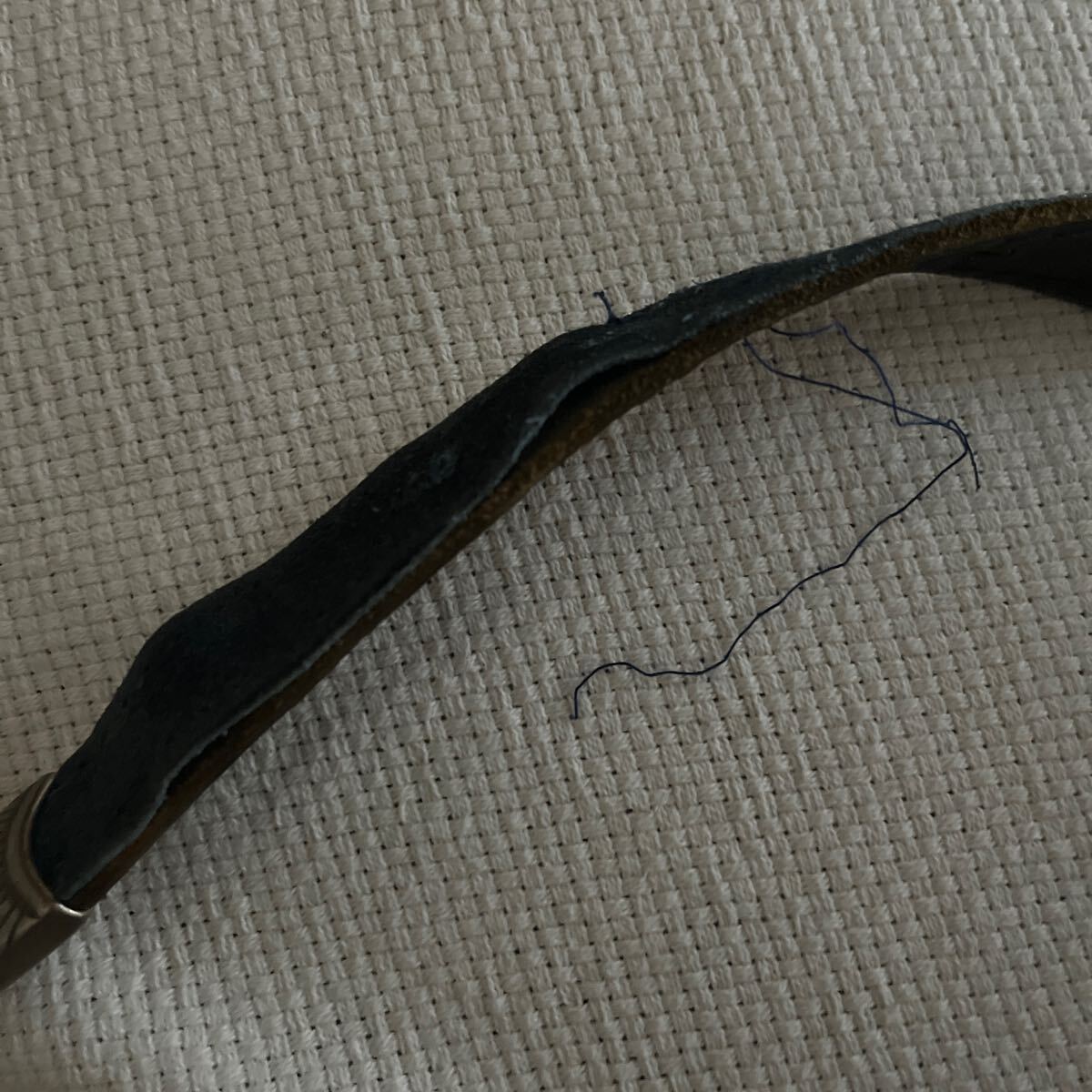 Williamのレザーベルトです。全体的に綺麗ですが、色褪せ、ベルト部分の接着が剥がれています。ステッチも解けています。レザー接着剤で着きます。神経質な方は入札を控えて下さい。金具部分は問題ないです。カラーは最後3枚の色が近いです。