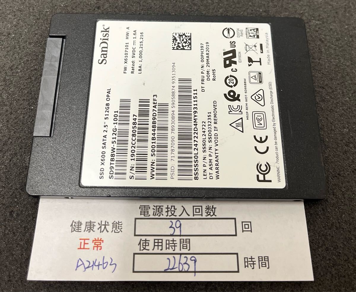【傷あり】A21463/中古品 /2.5インチSATA SSD/SanDisk/512GB/動作確認済み /返品返金対応 /納品書発行可(商品説明文ご確認下さい)