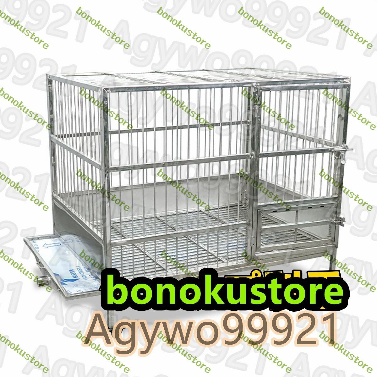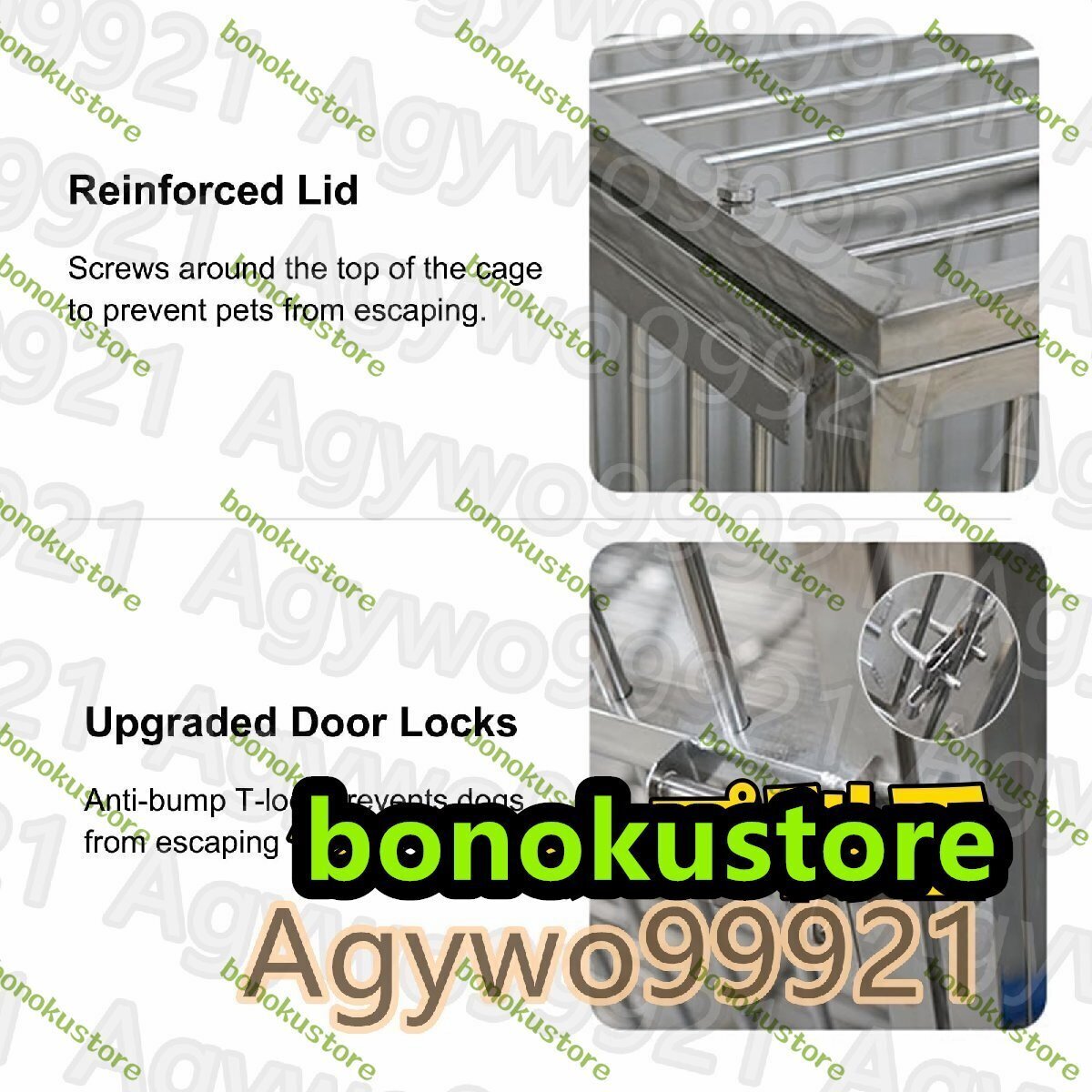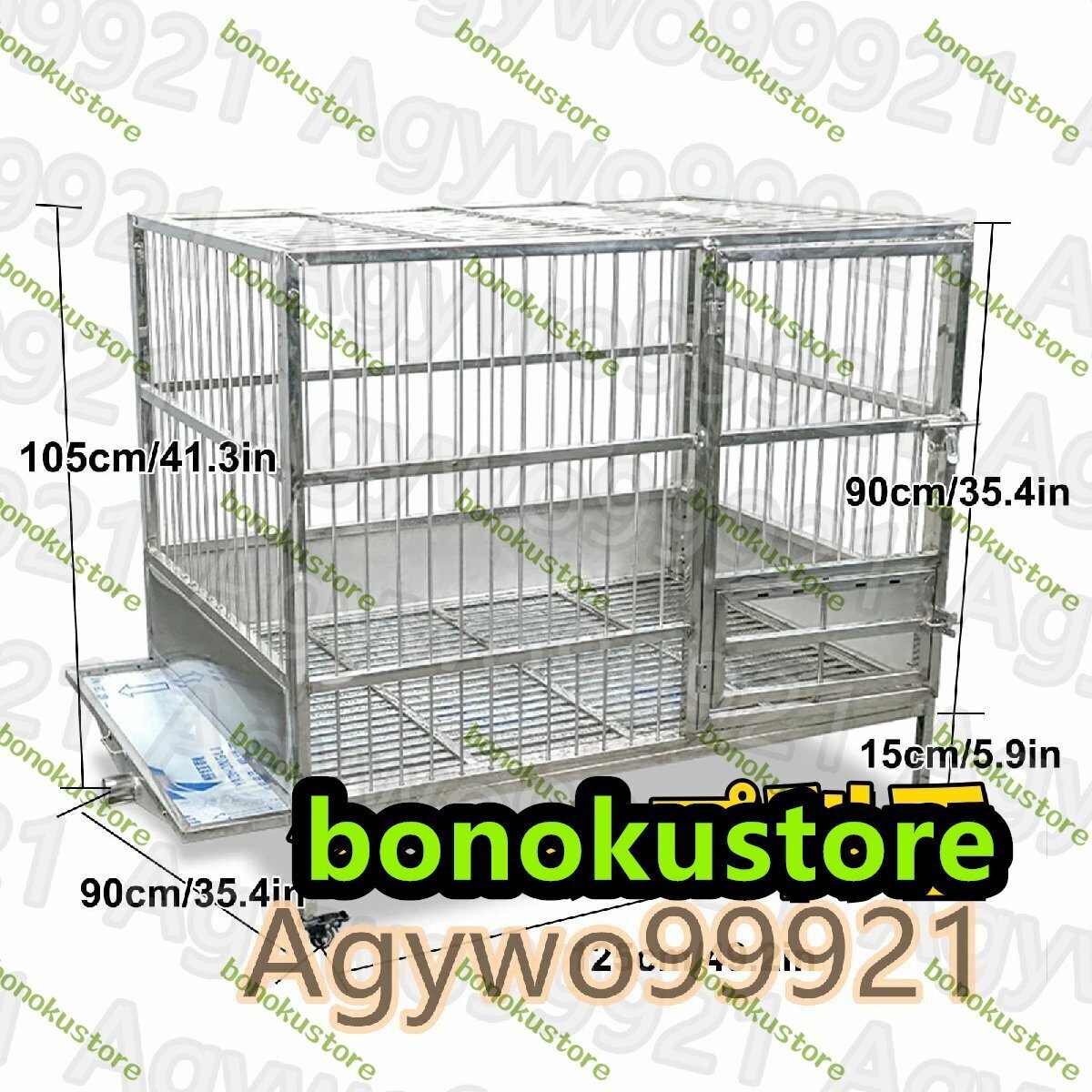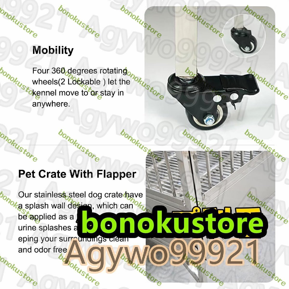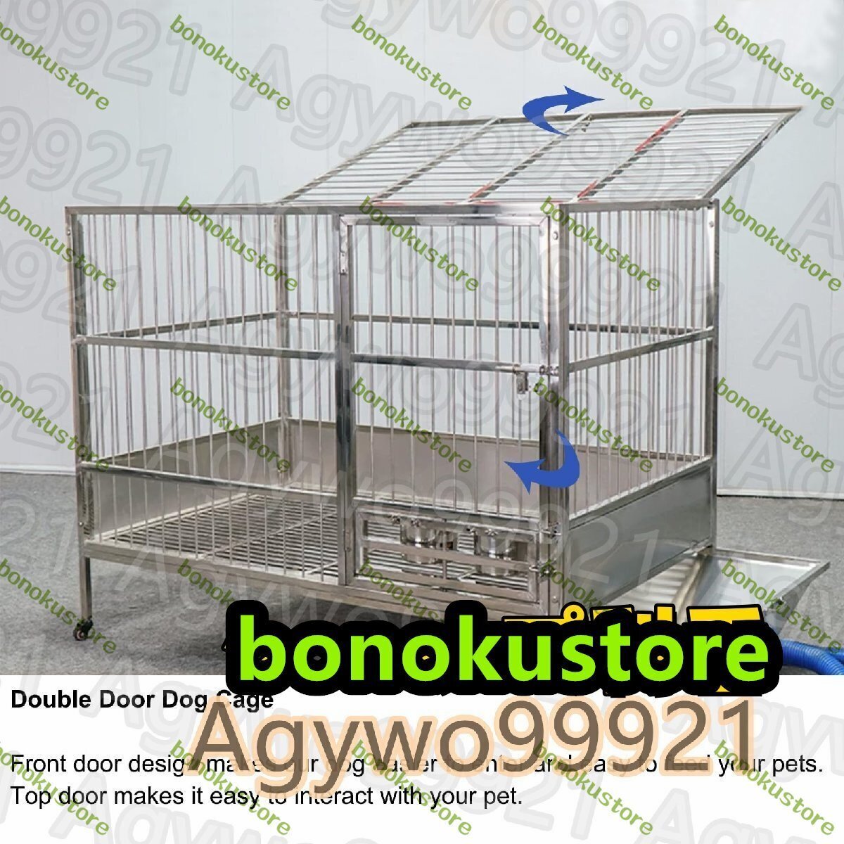 犬用ケージ ペットケージ ステンレス製のドッグケージ ダブルドア付き スイベルホイール付き 室内犬 ゲージ 犬小屋・ケージ 犬のトイレ付き(125X90X105cm)