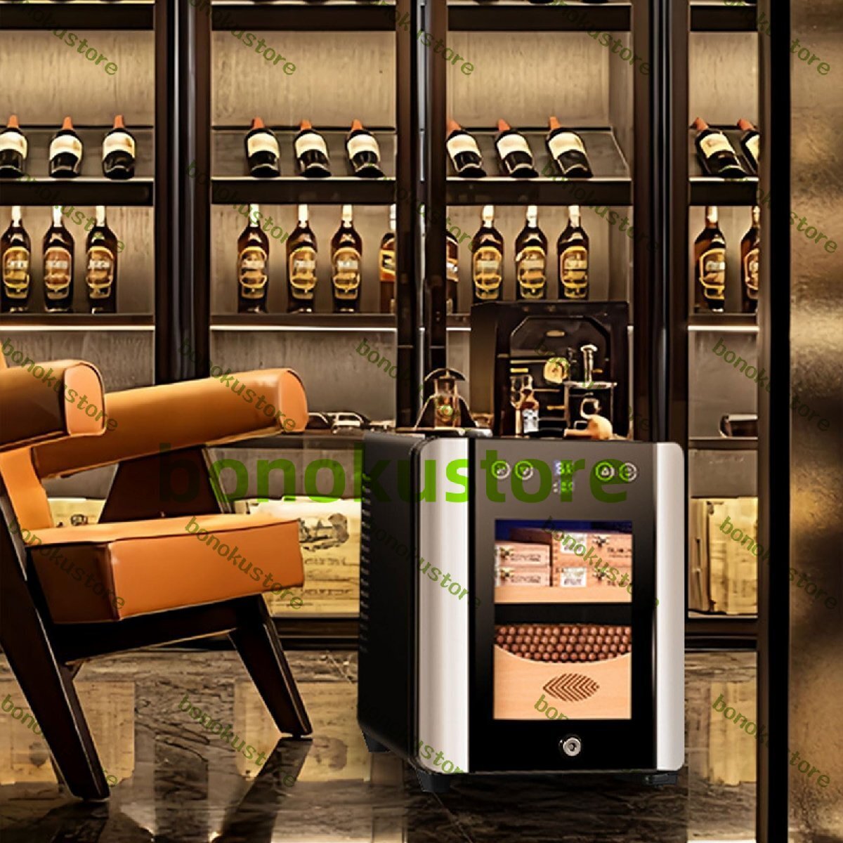 58W 電動シガーヒュミドール、8L 小型家庭用シガーキャビネット、冷却機能付き、11-18℃ 温度制御、シガー 100 本用、二重ガラスドア、自宅、バー、オフィス、会議室用