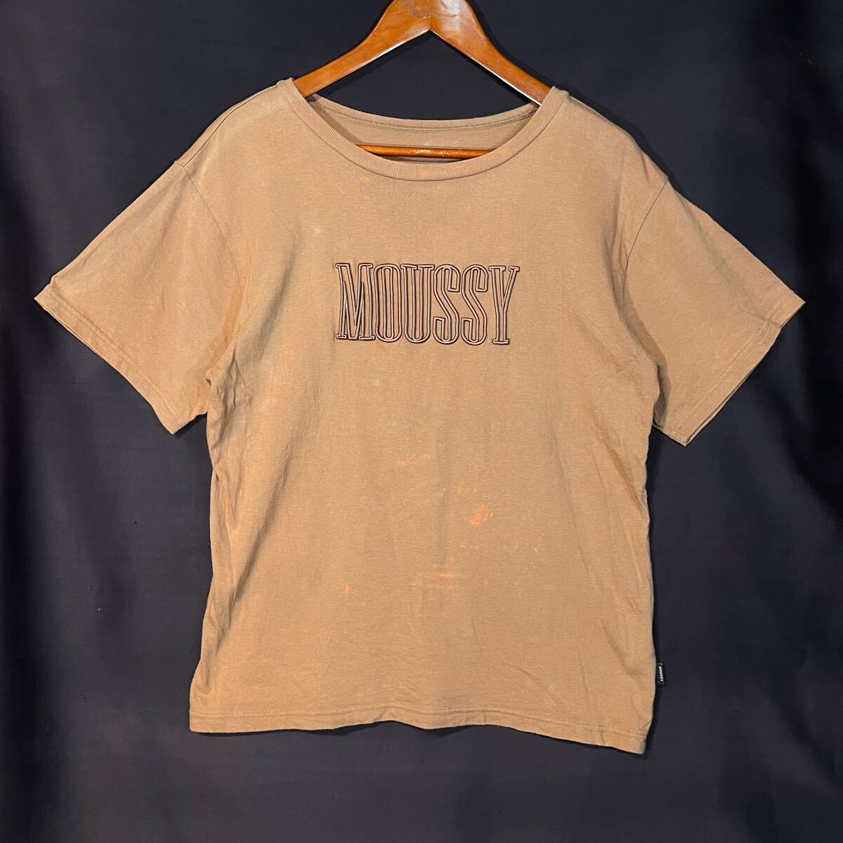 訳あり MOUSSY 立体刺繍ロゴ ビッグロゴ デカロゴ 半袖Tシャツ マウジー  ロゴドン カットソー フリーサイズ AZUL BY アズール 柳10969