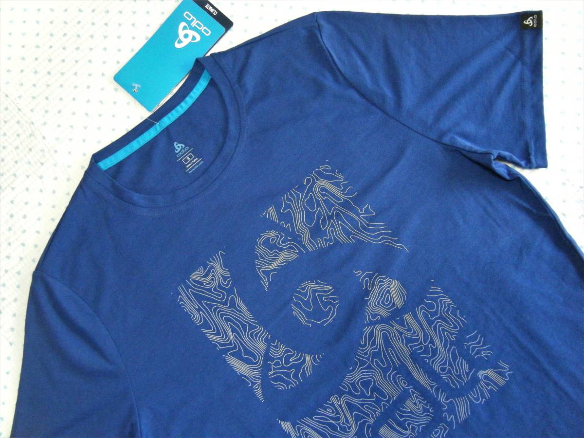 オドロ ODLO アウトドア用高機能プリントTシャツ 青色 サイズ US S/JP M相当 モイスチャーマネージメント機能 定価 4,840円