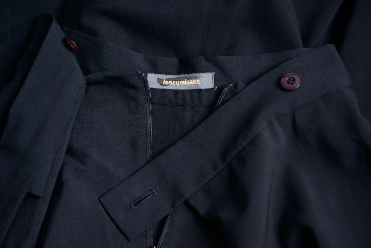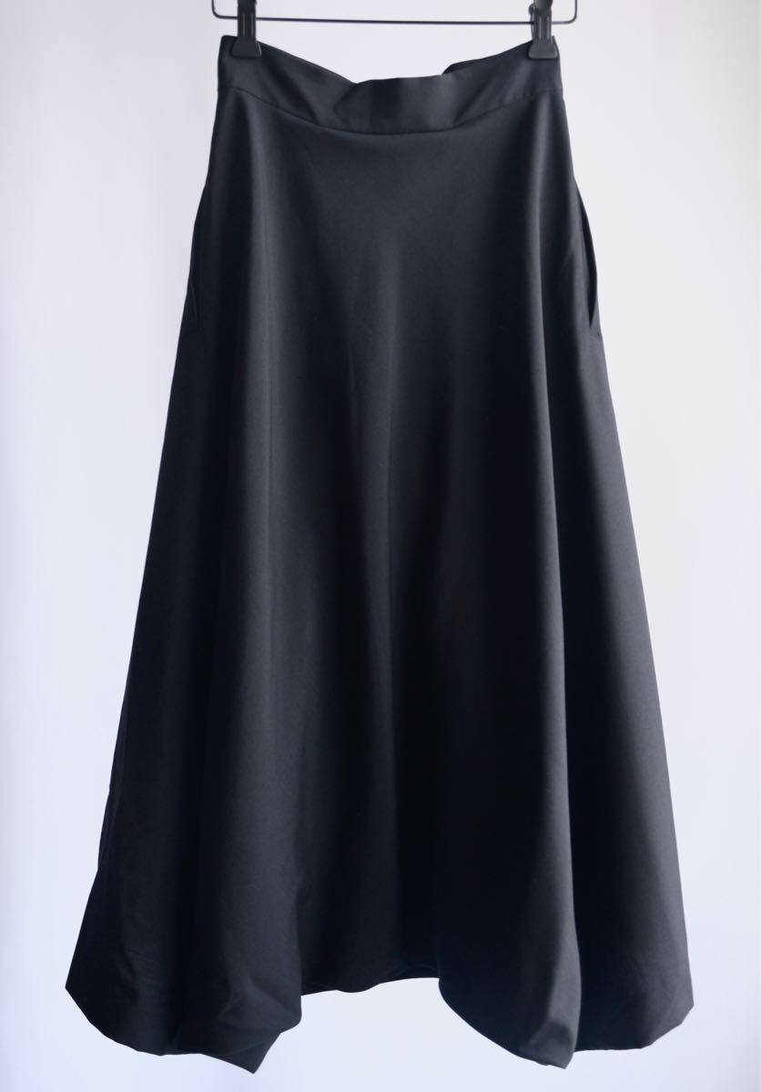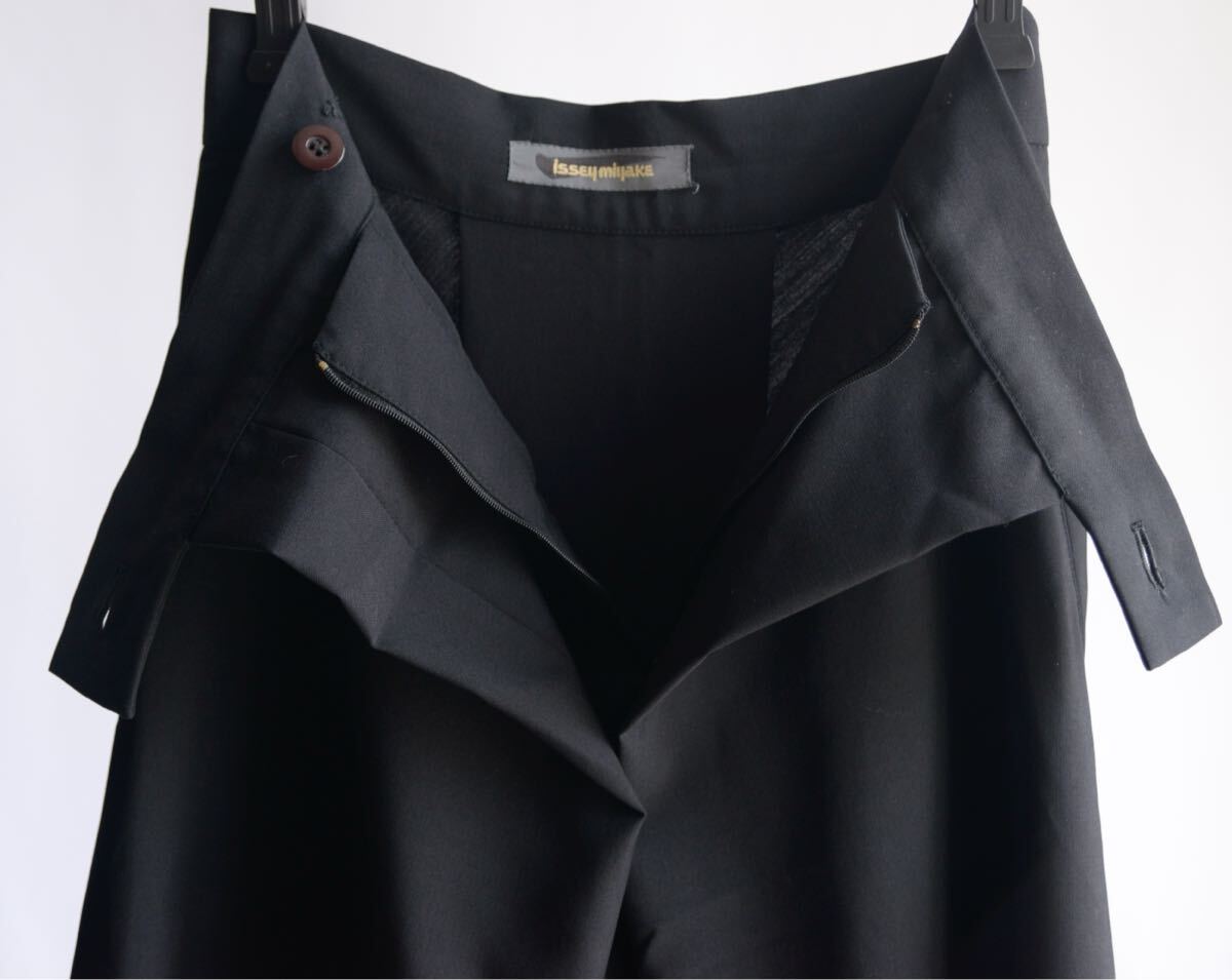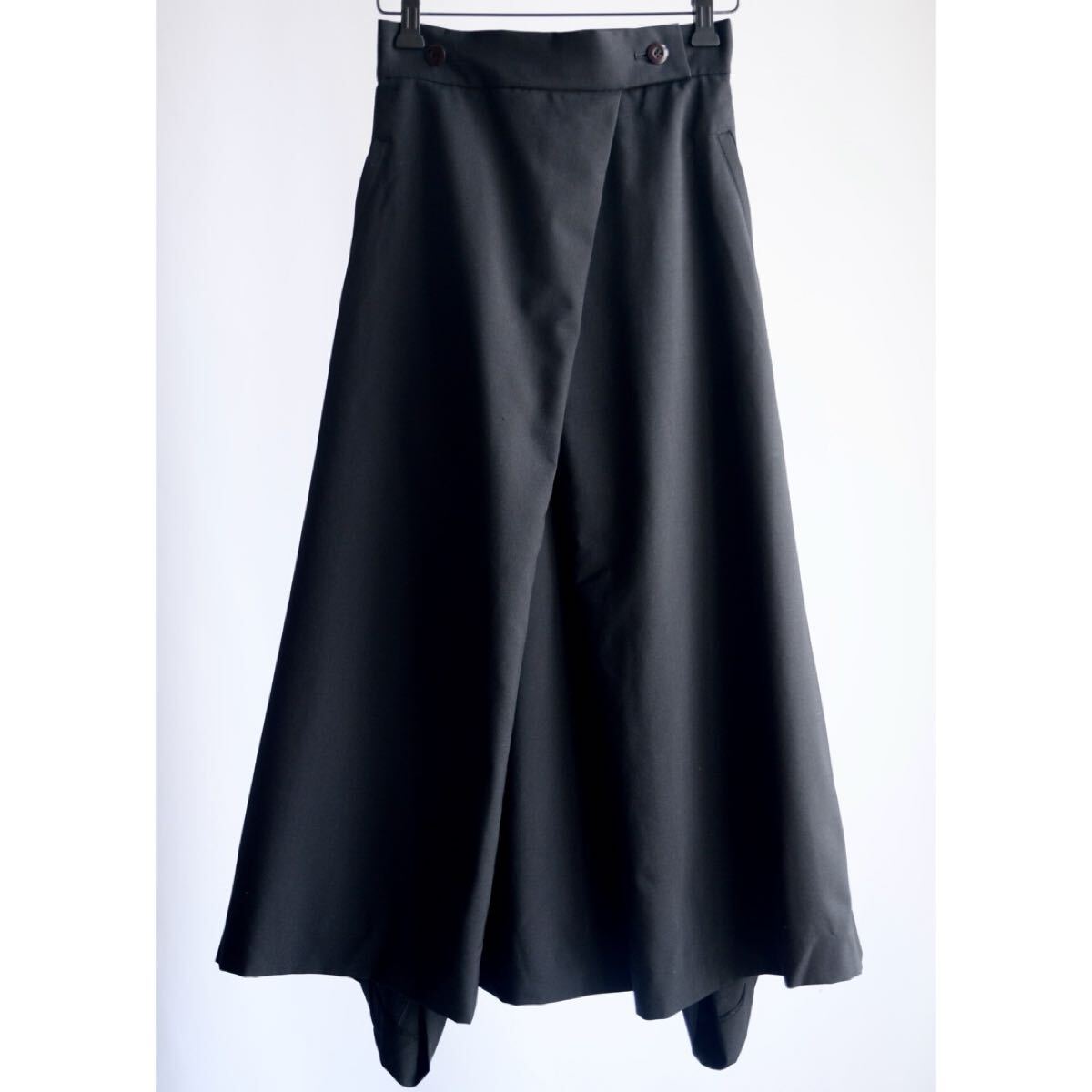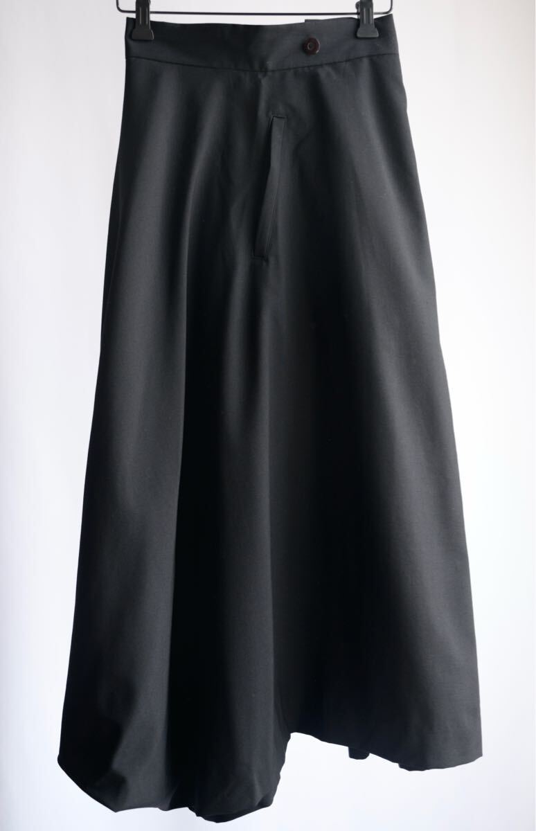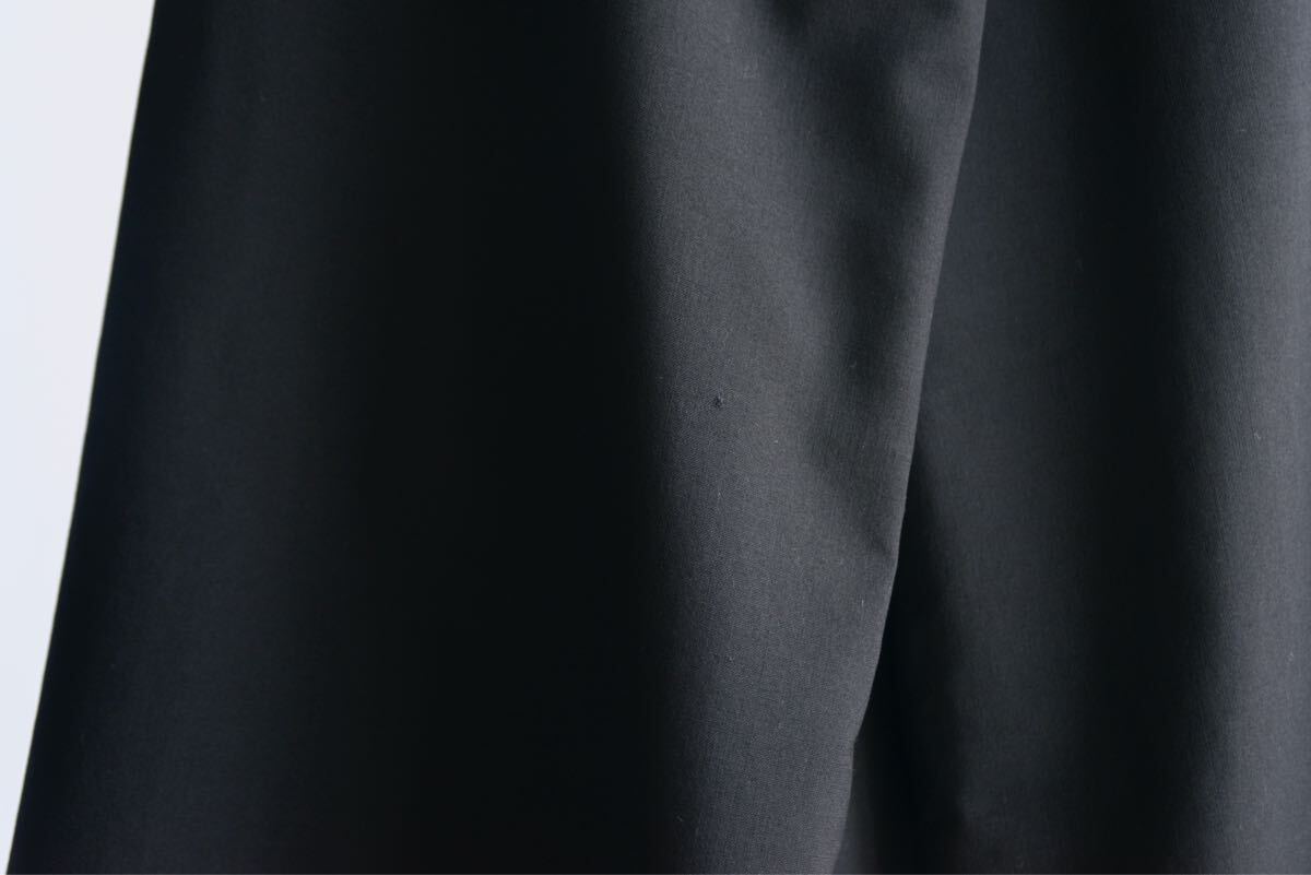 布を左右から内側へ向かって折り、重ね合わせることで袴の様な端正なシルエットを作り出しています。