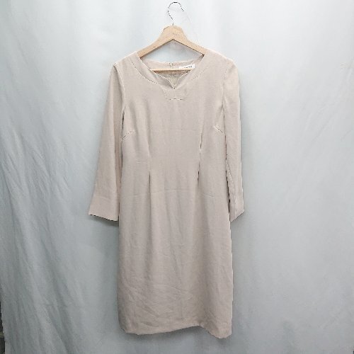 ◇ ⊂ NATURAL BEAUTY BASIC 長袖 膝下 ワンピース サイズM ベージュ レディース E