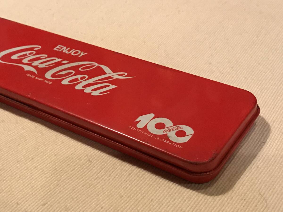A9081●コカコーラ 100周年 記念品 ノベルティ 缶ペンケース CENTENNIAL CELEBRATION 約22.5×6.5×1.5㎝ キズ汚れサビなどあり。