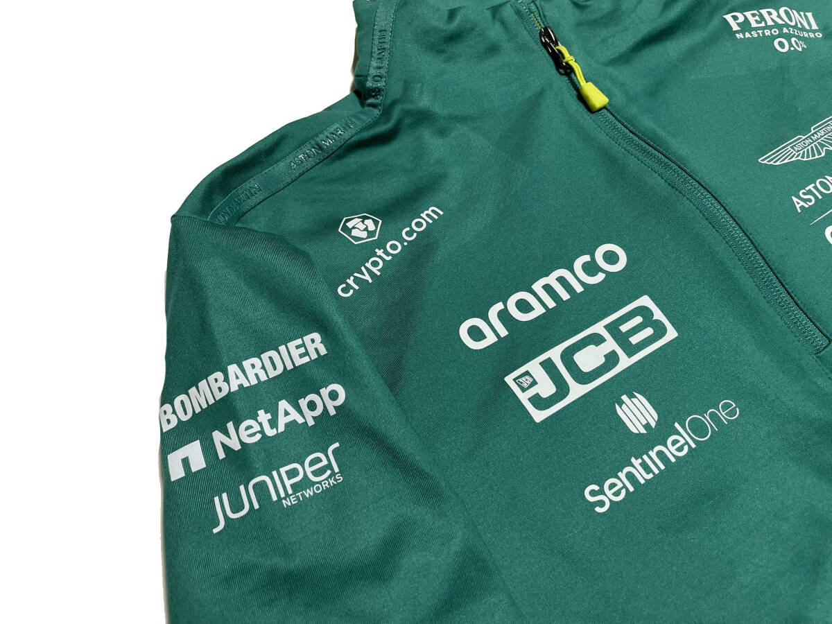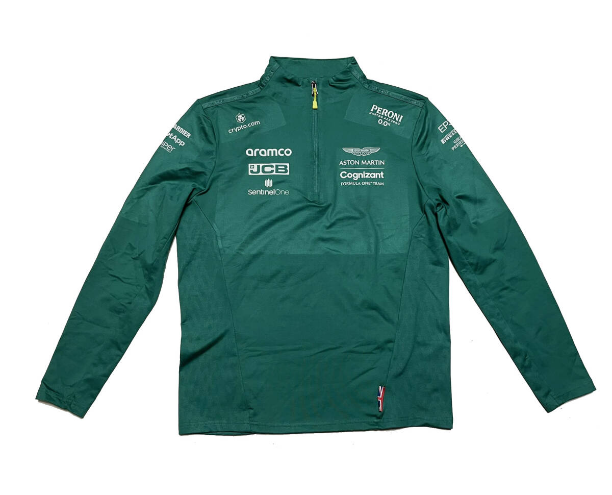 【商品の説明】アストンマーティンF1チームの2022年チーム支給品ハーフジップ未使用品です。市販のレプリカではフロント左胸とバックの「aramco」、右袖の「Juniper」 ロゴが付いておりません。Pelmark 製【商品状態】 未使用品【表記サイズ・実寸】:M 身幅 55cm 着丈 67cm注意事項:一般販売される市販品とは保管方法や使用用途が異なります。状態を細かく気にされる方は入札をお控えください。落札後はノークレームノーリターンでお願いします。