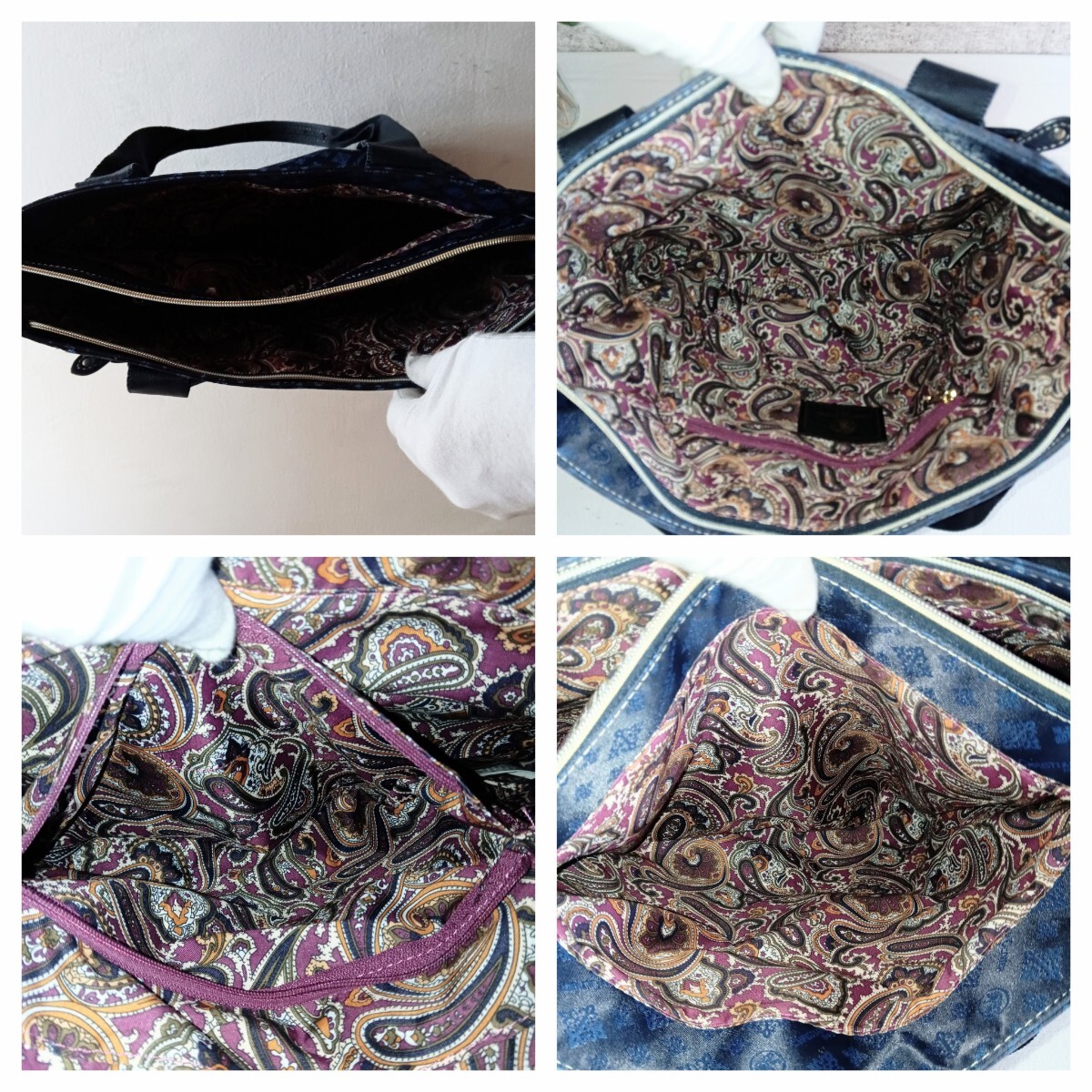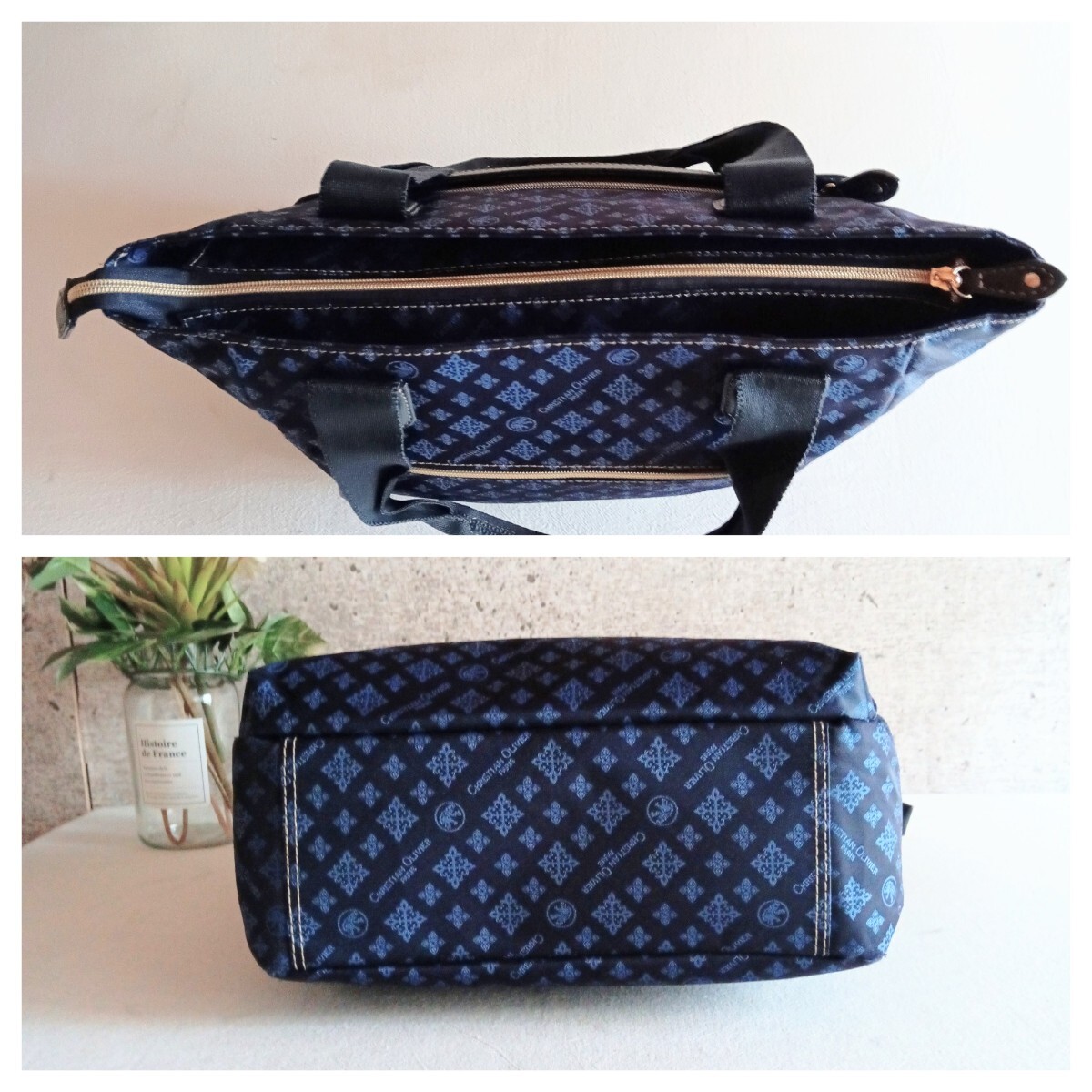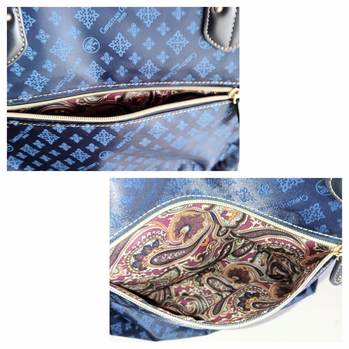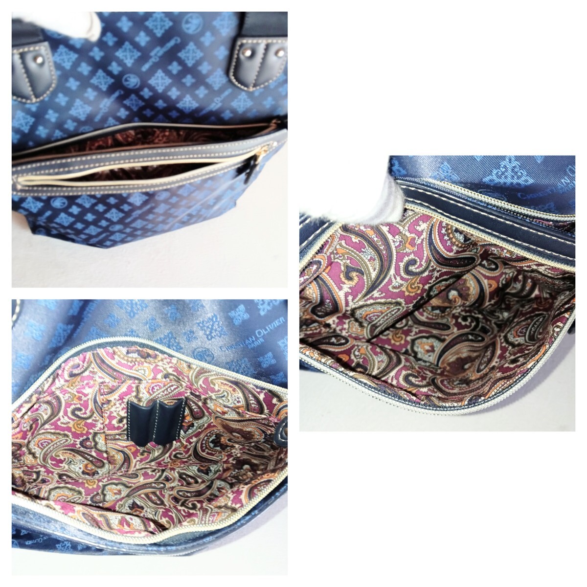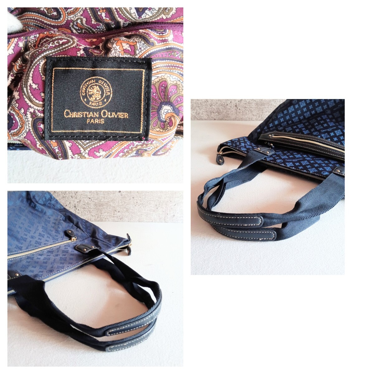 【商品】 CHRISTIAN OLIVIER クリスチャン オリビエ ヴィンテージ モノグラム 総柄 裏地 ペイズリー柄 ナイロン レザー 軽量 トートバッグ ショルダーバッグ 大容量 ハンドバッグ 肩掛け 手提げ 鞄 VINTAGE