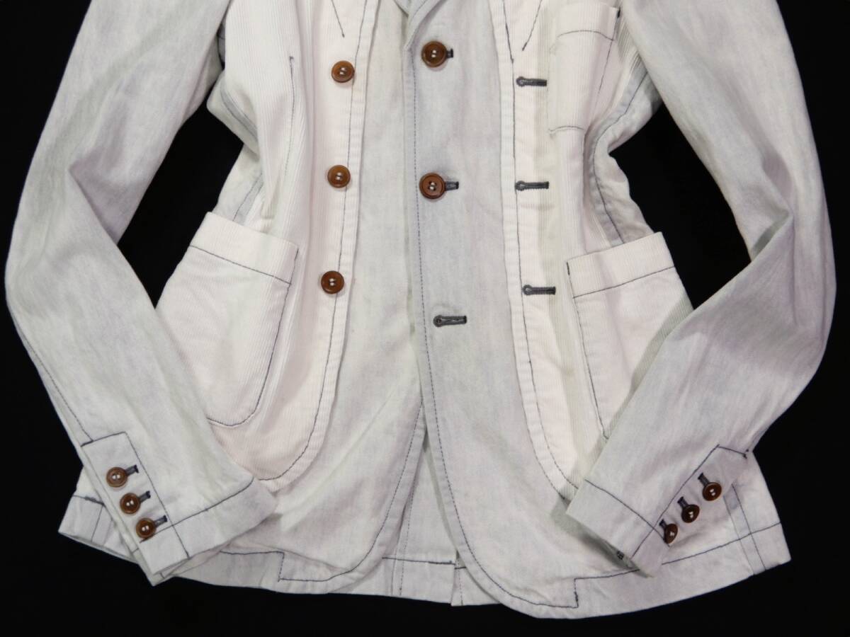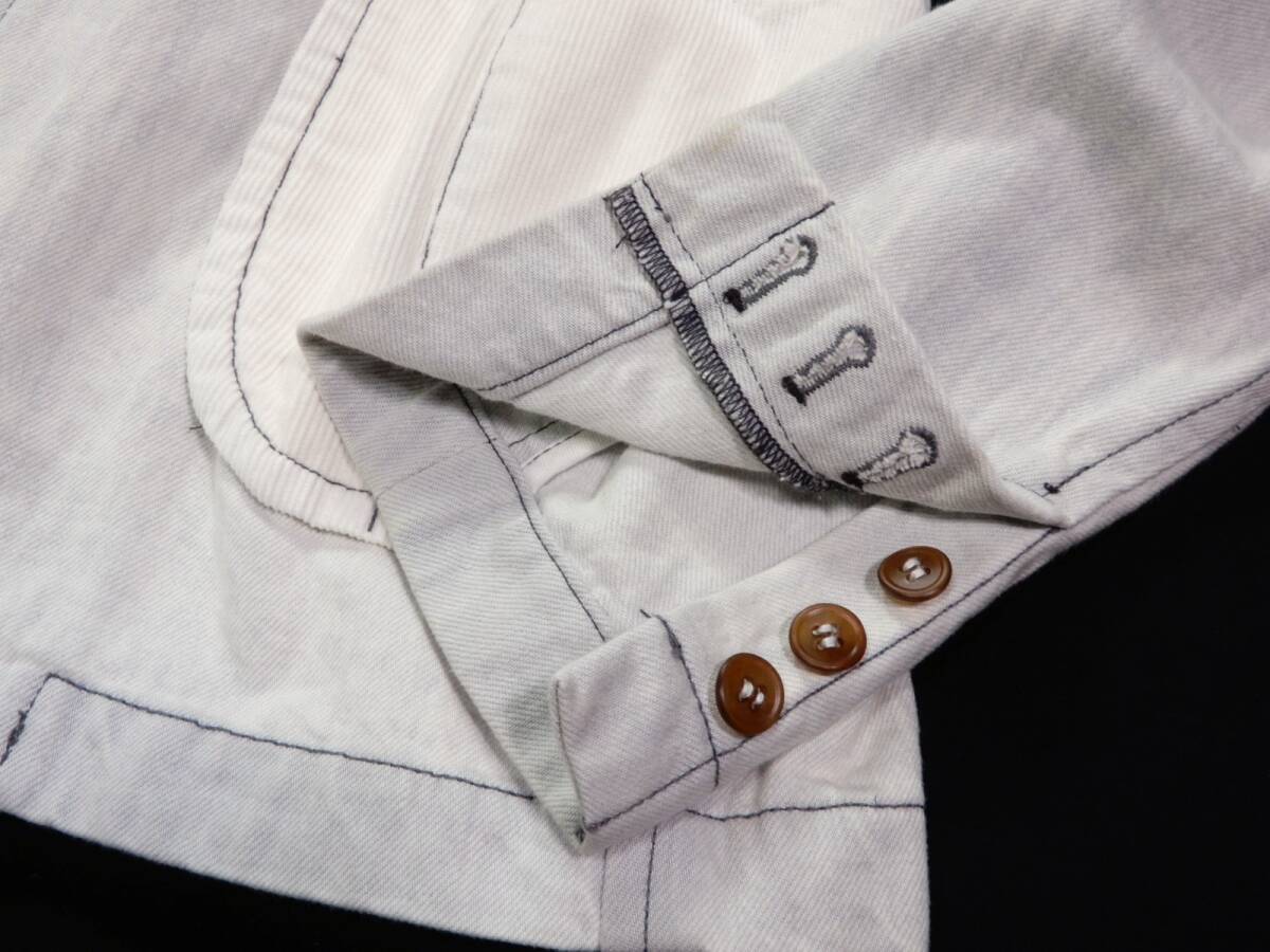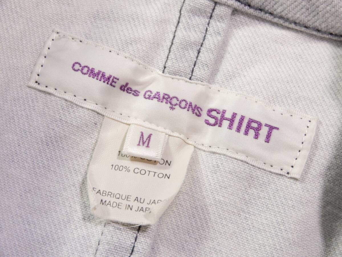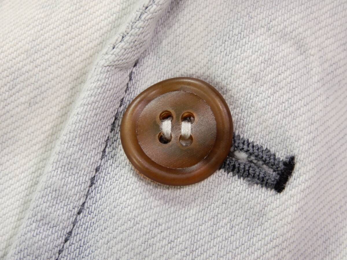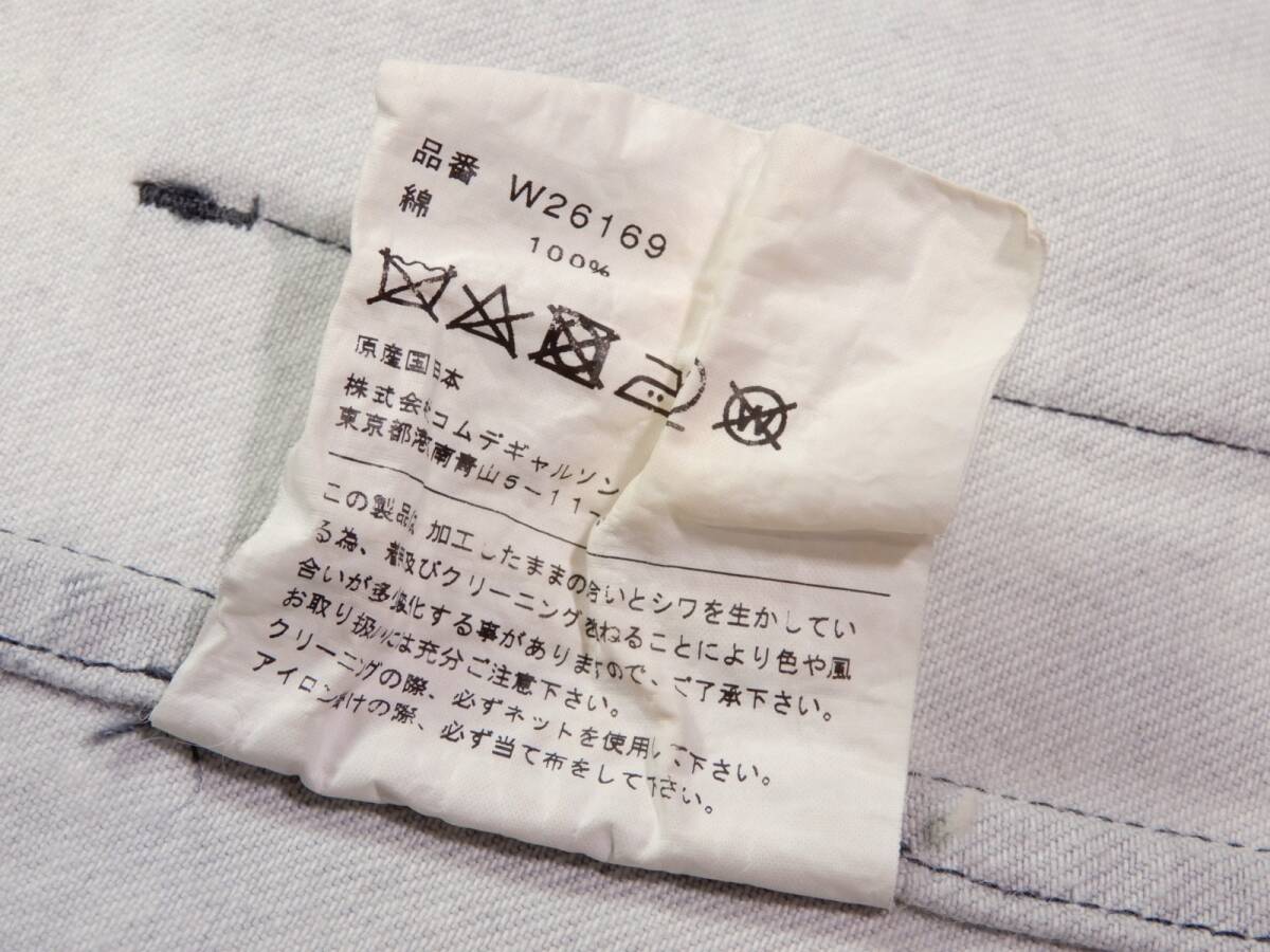 COMME des GARSCONS SHIRT ジャケット サイズ表記:M お色:ウォッシュドブルー、白 素材:綿100% 平置き実寸:肩幅40 身幅50 着丈72.5 袖丈67㎝位。 本切羽、3ボタン、センターベント。 |