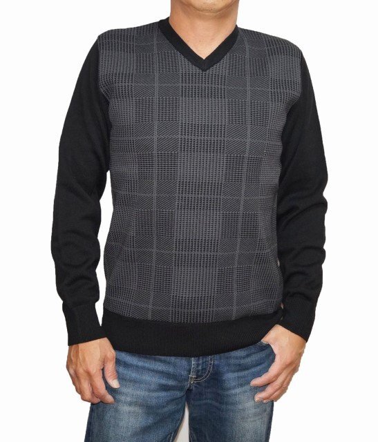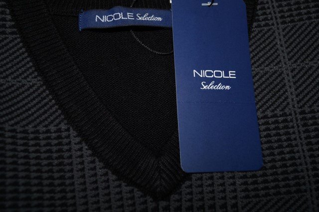 ニコル NICOLE selection アーガイル Vネック ニット 黒 メンズ 2466-6002 セーター 秋物 冬物 防寒 耐寒 保温 ブラック |