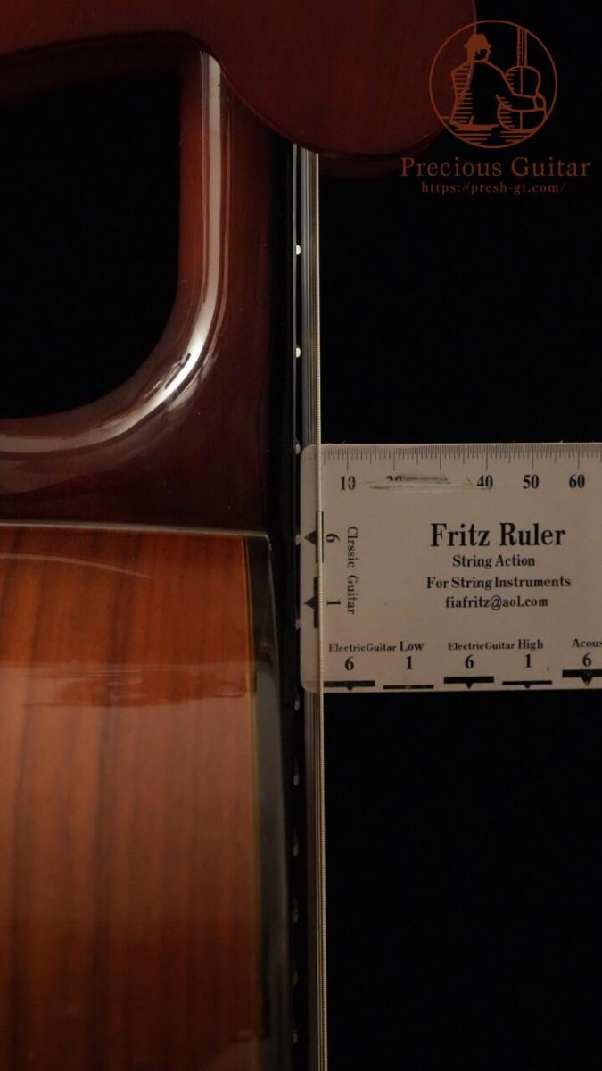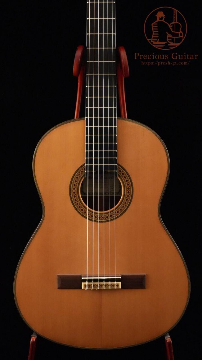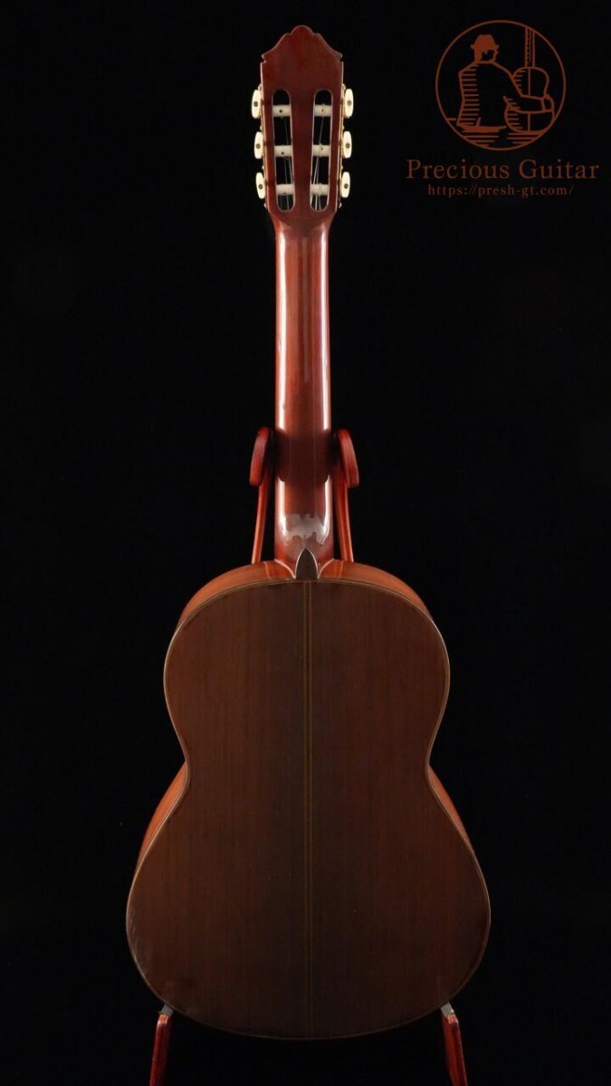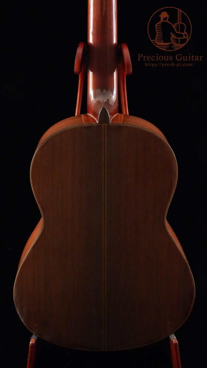 トップはスプルース単板、同価格帯の現在のトップ板から比べると年輪は緻密な個体です。ブリッジの剥がれはありません。塗装はウレタン塗装、僅かに打ち傷、弾き傷を認めますが、いずれも軽微であり年式を考慮すると綺麗な状況です。サイド並びにバックはローズウッド合板です。いずれもウレタンです。大きな傷はなく比較的綺麗な状況なものの、前述の白濁を認めます。指板の目立つ凹みはありません。フレットの減りは中古ですので8割残とします。音の詰まりはありません。ネックは捻れはなく極軽く順反、クラシックギターとしては最適な状況です。サドルの出代はまだ残っていますので、弦高はもう少し下げることができます。ペグはYAMAHAオリジナル、軸間35mm、スムーズに巻き上げます。