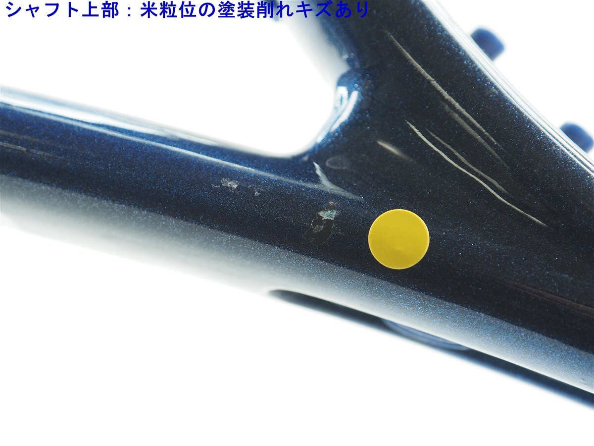 フレーム両面やシャフトに米粒くらいの大きさのキズや小さな細かいキズなど表面塗装削れの擦りキズが多数見られ、塗装が剥げて下地が出ています。また、バンパーの擦れなどラケットの使用感もあります。ただ、キズは多いですがご使用には問題ありません。