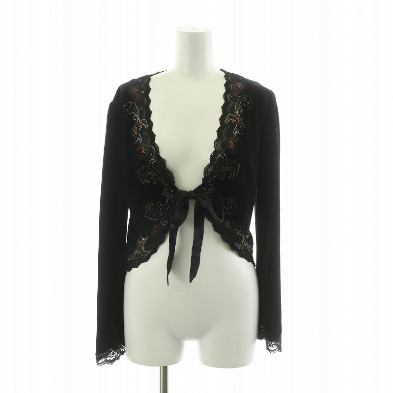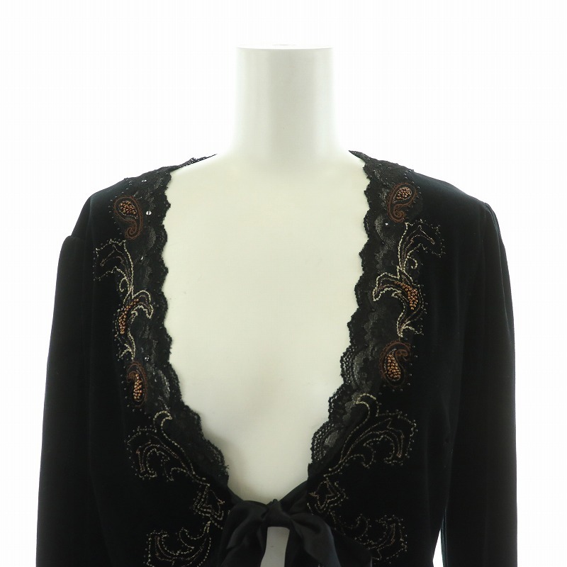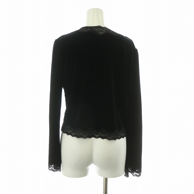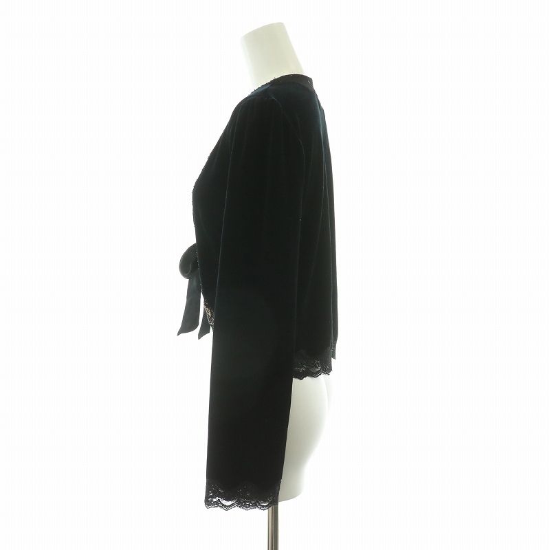 ローラアシュレイ LAURA ASHLEY カーディガン ニット ベロア 絹 シルク混 ショート M ブラック TSJ205H6 /NQ レディース