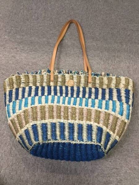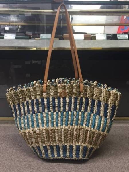 美品!格安!トリーバーチ ロゴ マルチカラー ストロー×レザー かごバッグ トートバッグ