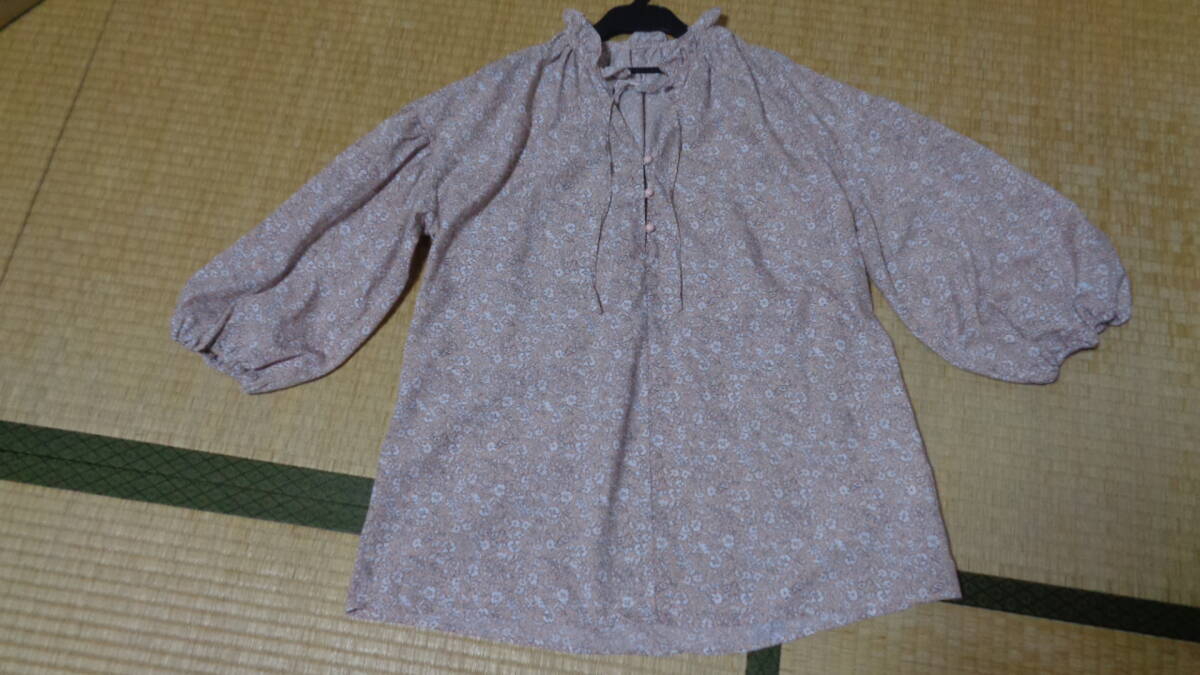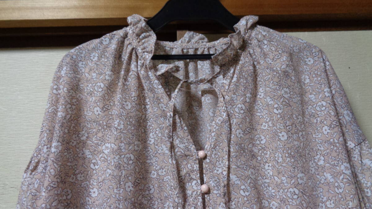 送料込み・未使用 GU プリントフリルネックペザントブラウス(7分袖) L