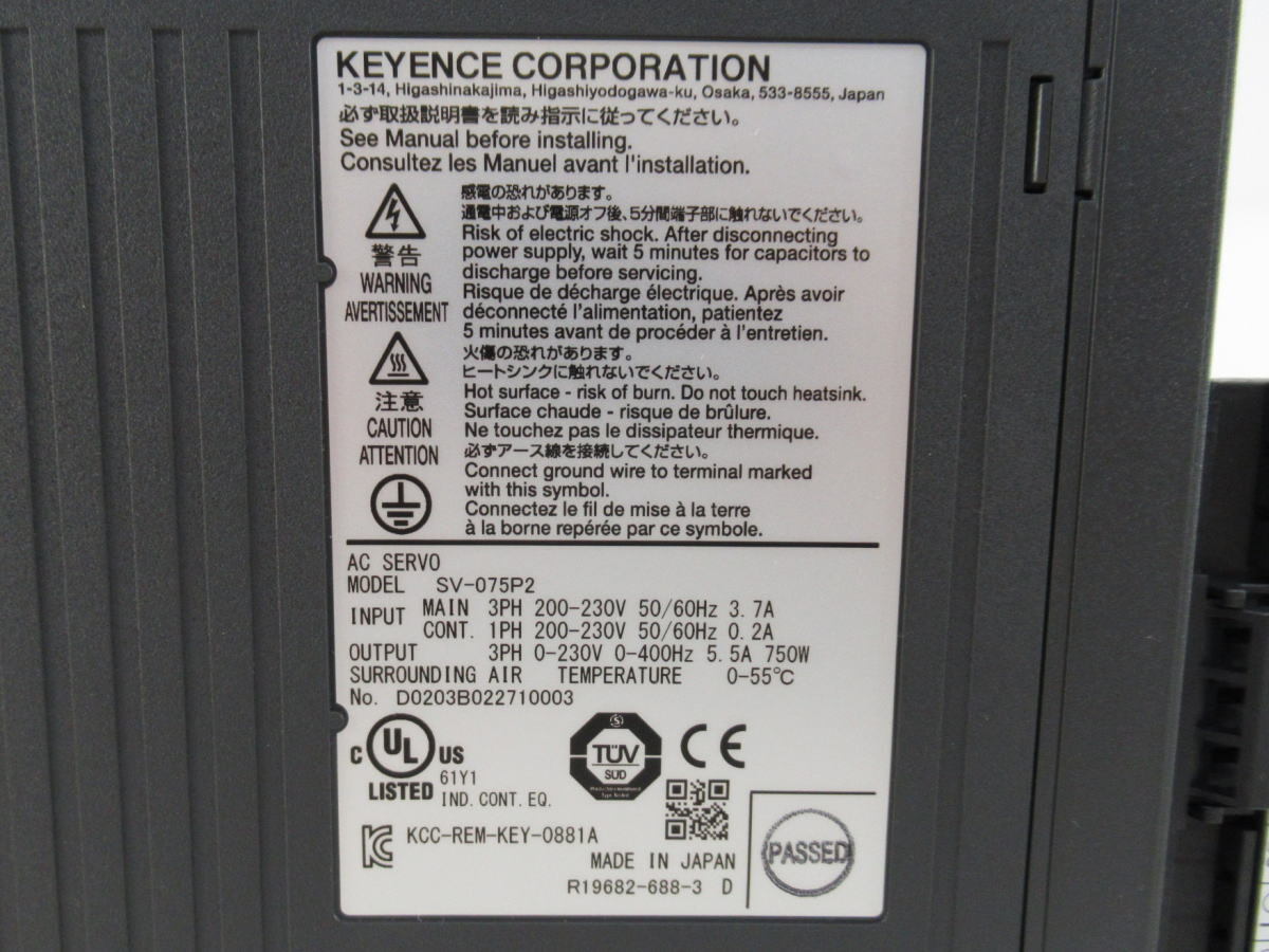 ■070401-216■未使用保管品■KEYENCE/キーエンス■ACサーボシステム■取扱説明書付き■SV-075P2■現状■