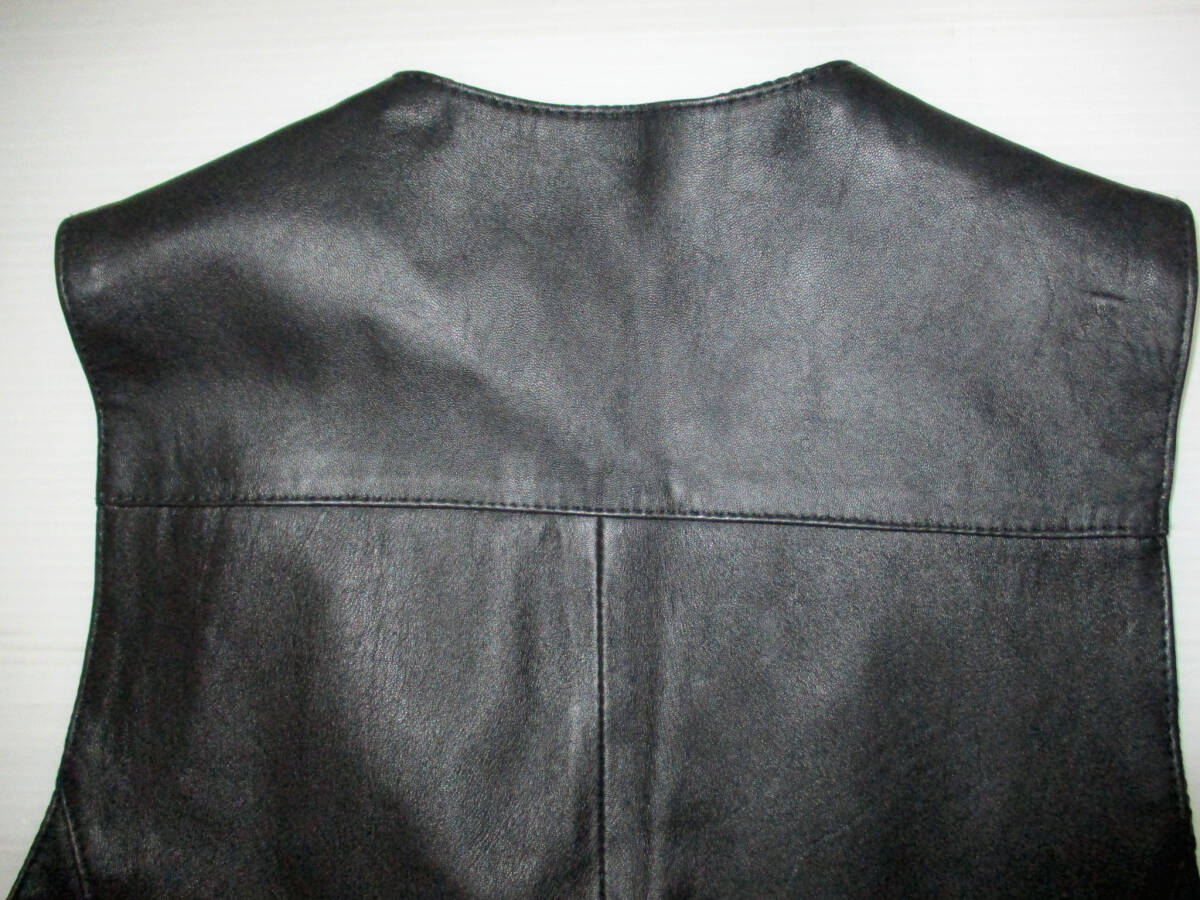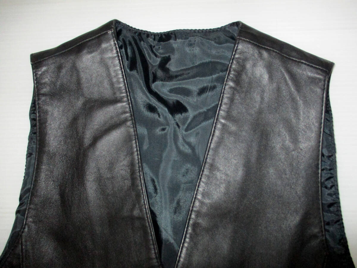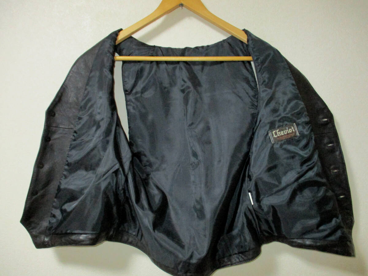 CHEVIOT 羊革レザーベスト 黒 サイズF です。 素材は羊皮、裏地はナイロンです。色は黒です。色は画像でご確認ください。