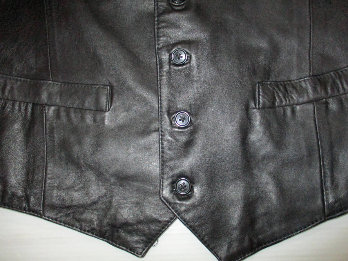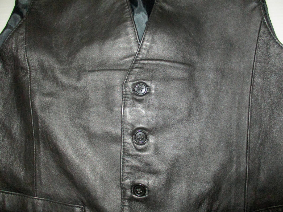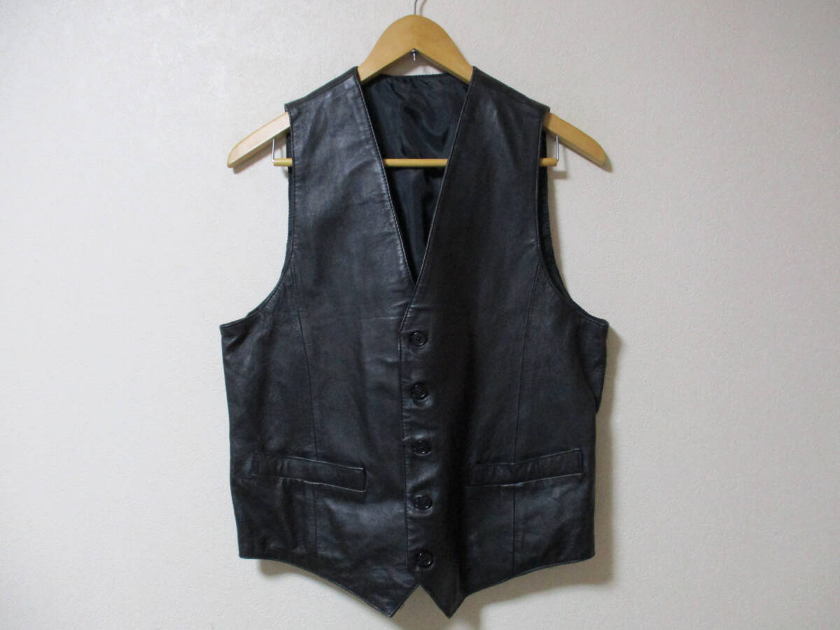 CHEVIOT 羊革レザーベスト 黒 サイズF です。 素材は羊皮、裏地はナイロンです。色は黒です。色は画像でご確認ください。