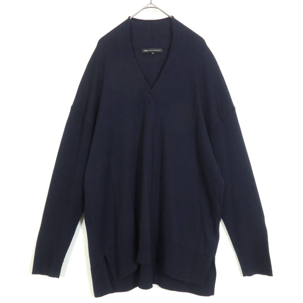 商品説明 | 【実寸約】裄丈82バスト118着丈68(cm) 【サイズ表記】 46(B92~96T160~164) 【素材】 毛100% 【状態】使用感少なめの美品 【デザイン】濃紺系 ウール100%の長袖ニットです。 長め丈でヒップラインも気になりません。 袖と裾はリブニットです。 |