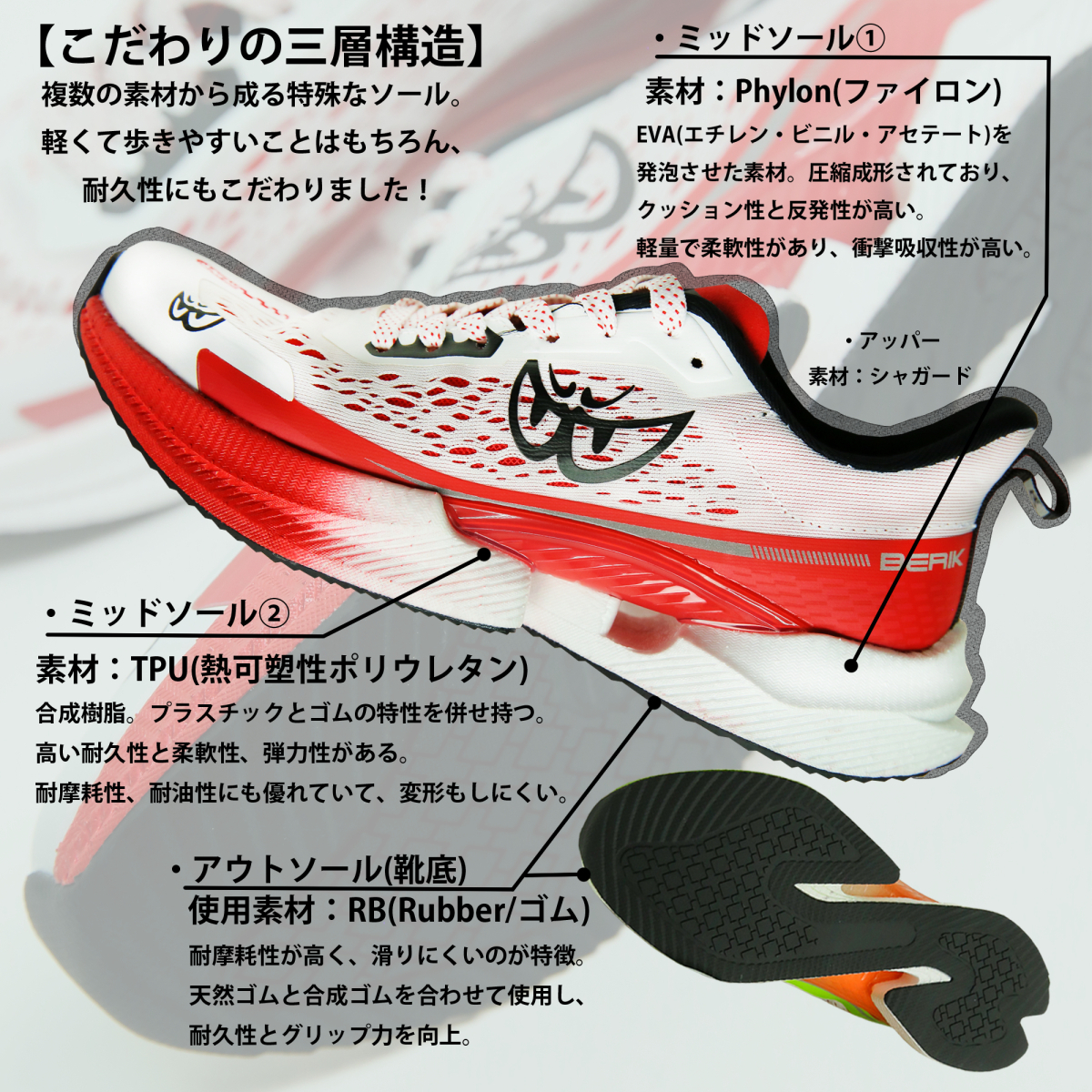 一般的なスニーカーにはほぼ使用されないTPUなどの素材を取り入れた特殊な構造なので、耐久力も抜群!
