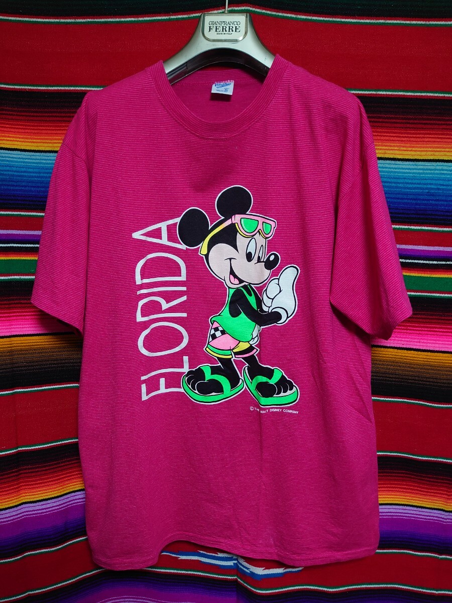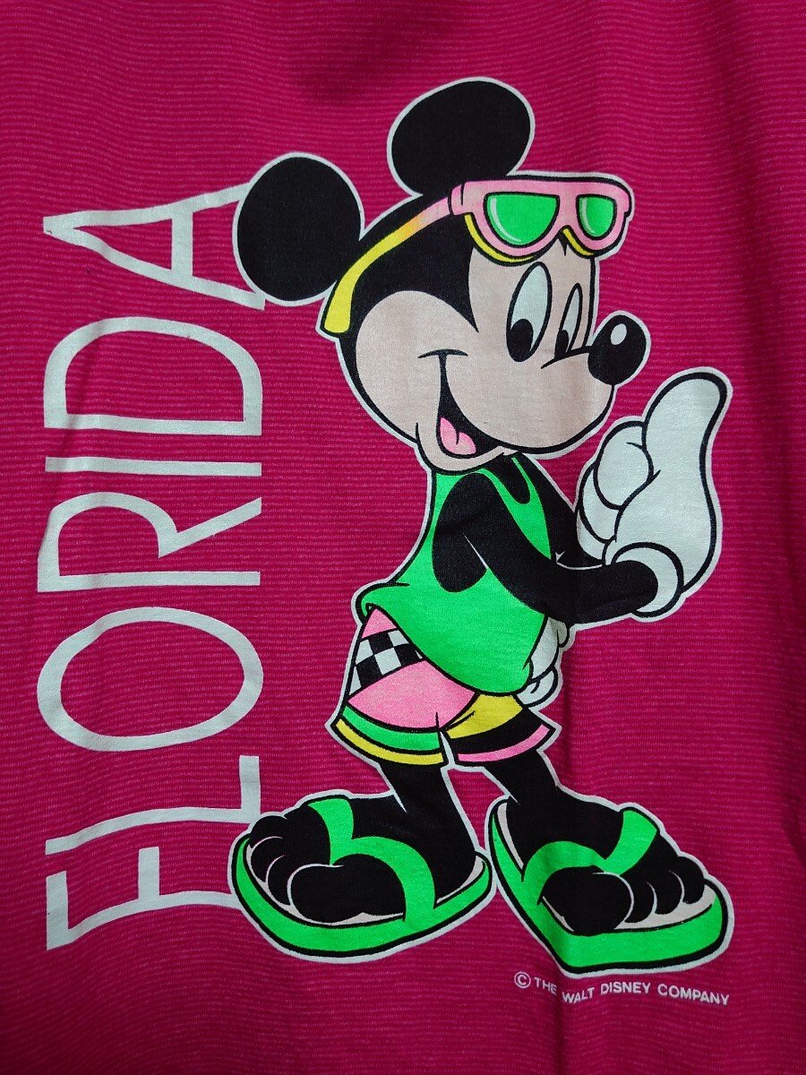 Velva Sheen ベルバシーン Vintage FLORIDA ミッキーマウス プリント ボーダーTシャツ 美品 XLサイズ ピンク ビッグサイズ USA製品