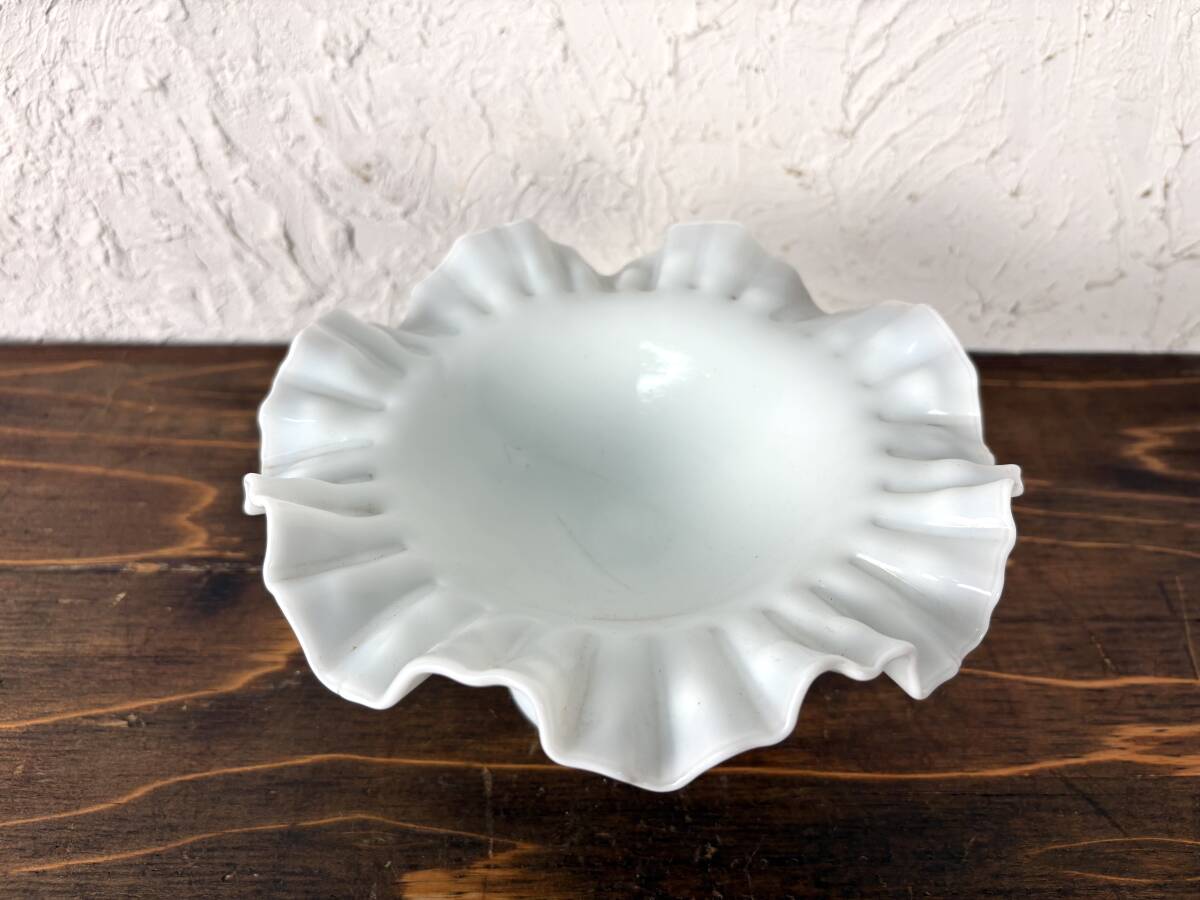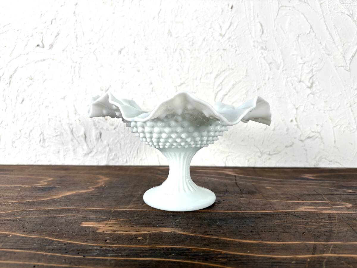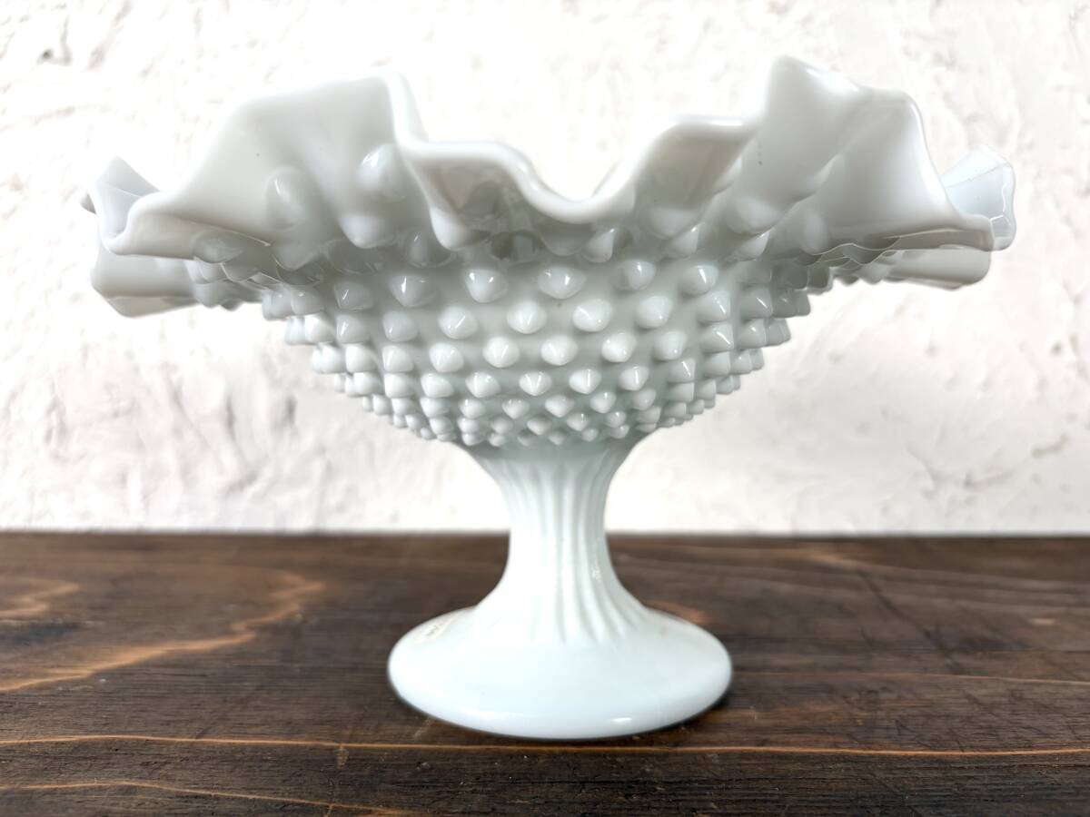 ビンテージ FENTON ホブネイルガラスコンポート フェントン フラワーベース 花うつわ 花瓶 ホブネイル ミルクガラス 小物入れ アクセサリー