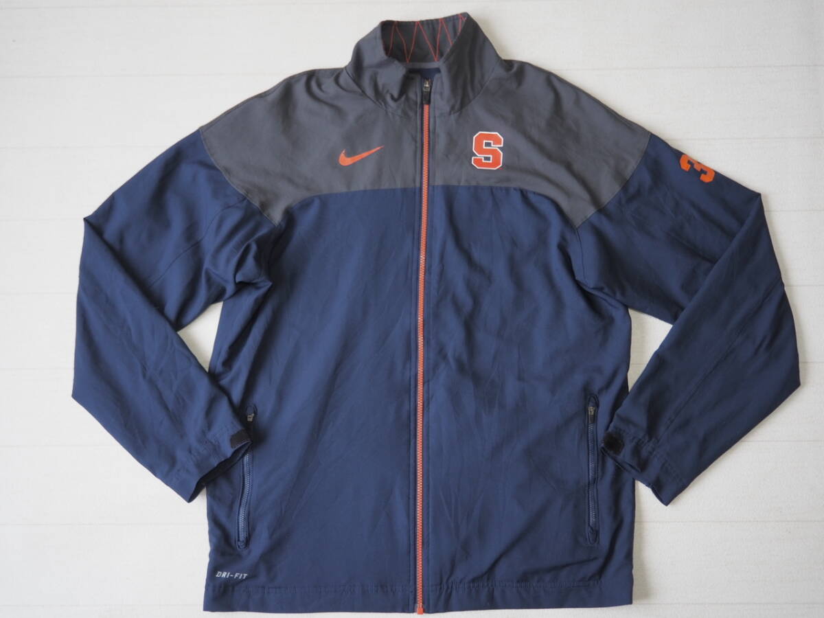☆送料無料☆ NIKE ナイキ USA直輸入 古着 ジップアップ 裏メッシュ DRI-FIT シラキュース大学 トラックジャケット メンズ L ネイビー 中古